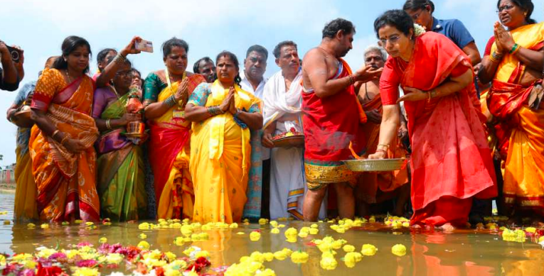 కుప్పం (చైతన్యరథం): కుప్ప పర్యటనలో రెండో రోజు గురువారం గుత్తార్లపల్లిలో జలహారతి కార్యక్రమంలో సీఎం చంద్రబాబు సతీమణి, ఎన్టీఆర్ ట్రస్ట్ మేనేజింగ్ ట్రస్టీ నారా భువనేశ్వరి పాల్గొన్నారు. శ్రీ ప్రసన్న చౌడేశ్వరమ్మ దేవాలయాన్ని సందర్శించి ప్రత్యేకా పూజలు నిర్వహించారు. హంద్రీనీవా ద్వారా కుప్పానికి కృష్ణా జలాలు తరలింపుపై సీఎం చంద్రబాబుకు ఈ సందర్భంగా కుప్పం ప్రజలు కృతజ్ఞతలు తెలిపారు. “మా మాటగా చెప్పు భువనమ్మ”.. అనే ప్లకార్డులతో భువనేశ్వరికి కుప్పం మహిళలు స్వాగతం పలికారు. ఈ సందర్భంగా భువనేశ్వరి మాట్లాడుతూ కృష్ణమ్మకు చీర, సారె అందించడం తన పూర్వ జన్మ సుకృతమన్నారు. కుప్పంలో ఇలా శ్రీశైలం నుంచి వచ్చిన కృష్ణా జలాలను చూడడం తన జన్మలో మర్చిపోలేని అనుభూతిని ఇచ్చిందన్నారు. ఈ కార్యక్రమానికి భారీ సంఖ్యలో మహిళలు తరలి వచ్చారు.
