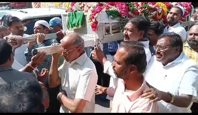కడప(చైతన్యరథం): ఎన్టీఆర్ వీరాభిమాని, నందమూరి కుటుంబానికి అత్యంత సన్నిహితుడు, కుటుంబసభ్యుడిగా మెలగిన కడపకు చెందిన టీడీపీ నాయకుడు, ఉపాధి హామీ పథకం మాజీ కౌన్సిల్ మెంబర్ పోతుగంటి పీరయ్య మృతిచెందారు. సోమవారం జరిగిన అంత్యక్రియల్లో నందమూరి రామకృష్ణ పాల్గొని పాడె మోశారు. మృతదేహాన్ని చూసి కంటతడి పెట్టుకున్నారు. ఆయనతో పాటు గౌడ కార్పొరేషన్ చైర్మన్ వీరంకి గురు మూర్తి ఉన్నారు. ఈ సందర్భంగా కార్యకర్త స్థాయి నుంచి పార్టీలో రాష్ట్రస్థాయిలో గుర్తిం పు పొందిన పీరయ్యకు నందమూరి, నారా కుటుంబాలతో పాటు వ్యక్తిగతంగా తనకున్న స్నేహబంధాన్ని, ఆత్మీయతను గుర్తు చేసుకున్నారు. పీరయ్య ఆకస్మిక మరణం తమను ఎంతగానో బాధించి ందన్నారు. పార్టీ సుశిక్షితుడైన కార్యకర్తను కోల్పోయిందని, మా అందరి హృదయాల్లో పీరయ్య చెరగని ముద్రవేశారని తెలిపారు.