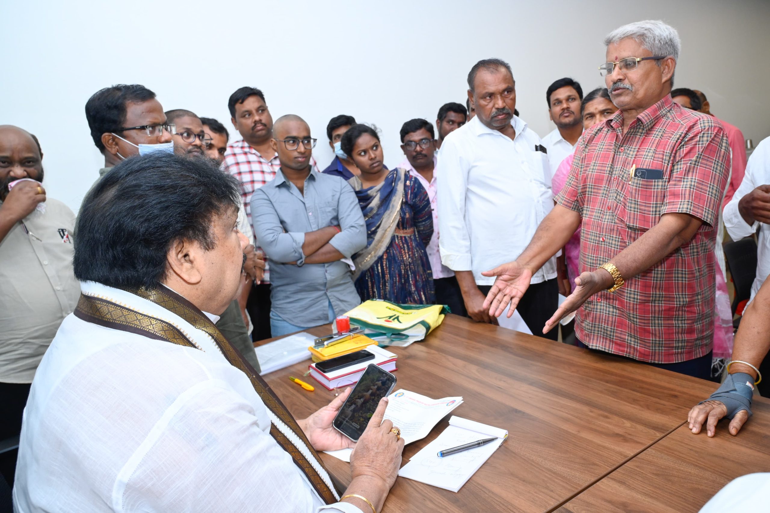 మంగళగిరి(చైతన్యరథం): నాల్గో తరగతి ఉద్యోగుల కో-ఆపరేటివ్ హౌసింగ్ బిల్డిం గ్ సొసైటీ లిమిటెడ్కు చెందిన 300 కోట్ల విలువైన స్థలాలను అక్రమంగా విక్రయించిన వారిపై చర్యలు తీసుకోవాలని ఎస్సీ, ఎస్టీ రాష్ట్ర సంక్షేమ సంఘం సమితి సభ్యులు కోరా రు. టీడీపీ కేంద్ర కార్యాలయంలో మంగళవారం ప్రజా వినతుల స్వీకరణ కార్యక్రమంలో ఆ మేరకు వినతిపత్రం అందజేశారు. ఆ స్థలాలను అర్హులకు కేటాయించాలని కోరారు. టీడీపీ పొలిట్బ్యూరో సభ్యులు వర్ల రామయ్య, మాజీ ఎమ్మెల్యే బొల్లినేని రామారావు అర్జీలు స్వీకరించారు.