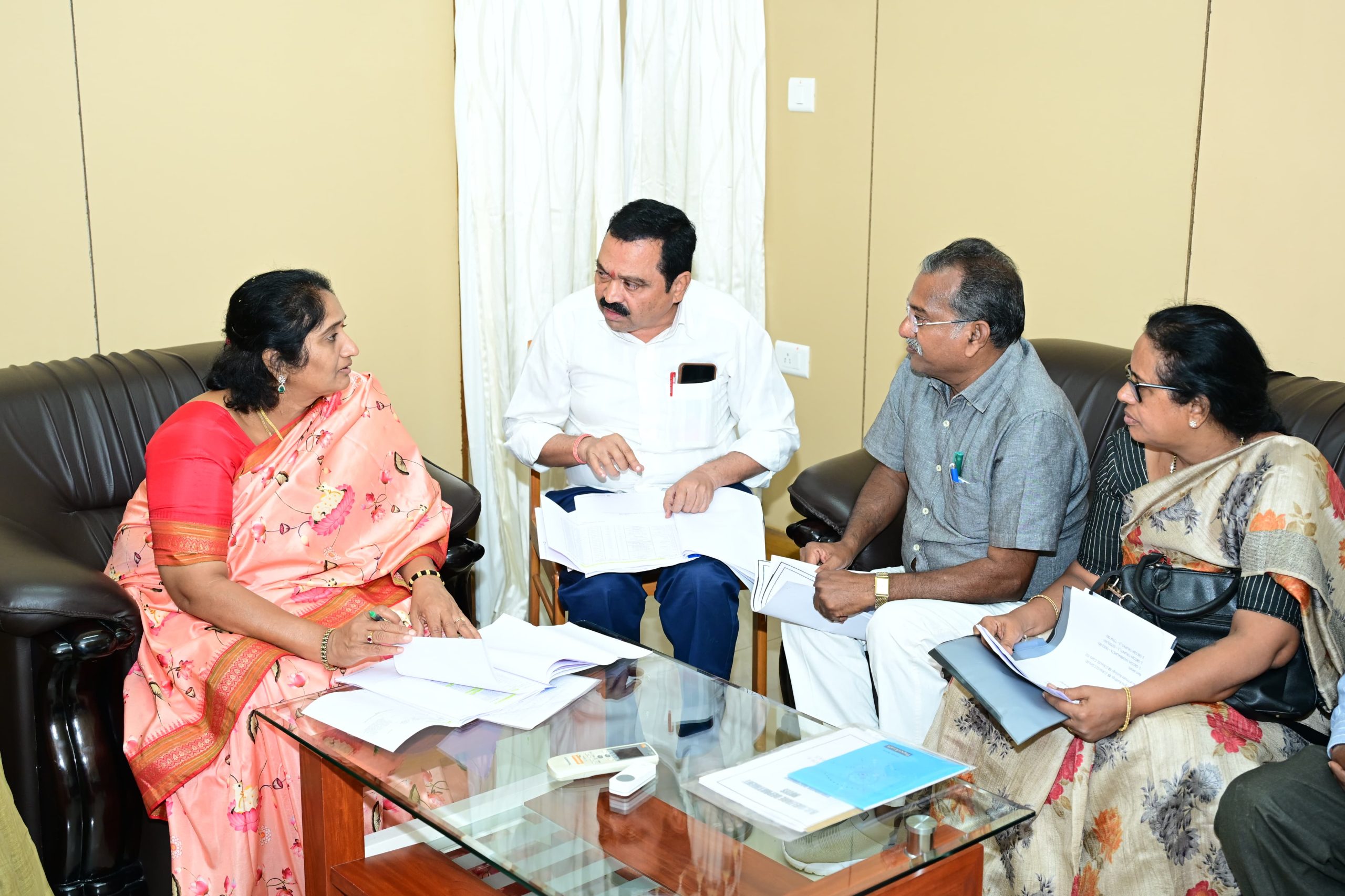 జిల్లాలో చేనేత వస్త్రాల విక్రయాలకు తీసుకుంటున్న చర్యల గురించి చేనేత, జౌళి శాఖాధికారులను మంత్రి సవిత అడిగి తెలుసుకున్నారు. సీఎం చంద్రబాబు చేనేత పరిశ్రమకు పెద్ద పీట వేస్తున్నారన్నారు. రాష్ట్రంలో వీవర్ శాలలు, టెక్స్టైల్స్ పార్కులతో చేనేత క్లస్టర్లు కూడా ఏర్పాటు చేస్తున్నామన్నారు. నేతన్నలకు 365 రోజులూ పనికల్పించడమే సీఎం చంద్రబాబు, మంత్రి నారా లోకేష్ ధ్యేయమన్నారు. దీనిలో భాగంగానే చేనేత రంగానికి ఆర్థిక పరిపుష్టి కలిగేలా నిర్ణయాలు తీసుకుంటున్నారన్నారు. నూతన టెక్స్టైల్స్ పాలసీ తీసుకొచ్చారన్నారు. పలు రాయితీలు నేతన్నలకు అందిస్తున్నారన్నారు. ఈ సమీక్షా సమావేశంలో బీసీ కార్పొరేషన్ ఈడీ శ్రీదేవి, చేనేత జౌళి శాఖ ఏడీ పి.వరప్రసాద్, ఆప్కో జిల్లా మార్కెటింగ్ అధికారి కోటేశ్వరరావు, ఖాదీ, విలేజ్ ఇండస్ట్రీస్ బోర్డు ఏడీ వెంకట్రావు, లేపాక్షి మేనేజర్ రవి, తదితరులు పాల్గొన్నారు.
