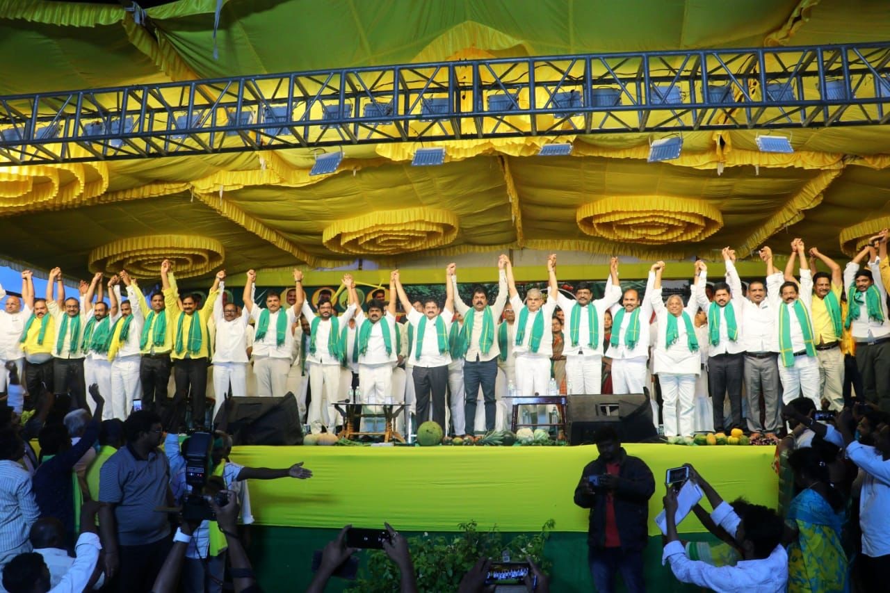 ఈ కార్యక్రమంలో మాజీ ఎంపీ కొనకళ్ళ నారాయణ, మాజీ మంత్రి కొల్లు రవీంద్ర, శాసనసభ్యులు గద్దె రామ్మోహన్రావు, పెద్దకూరపాడు మాజీ శాసనసభ్యులు కొమ్మలపాటి శ్రీధర్, నరసరావుపేట నియోజకవర్గ టీడీపీ ఇన్-ఛార్జ్ చదలవాడ అరవింద బాబు, మాచర్ల నియోజకవర్గ టీడీపీ ఇన్ఛార్జ్ జూలకంటి బ్రహ్మారెడ్డి, తాడికొండ మాజీ శాసనసభ్యులు తెనాలి శ్రావణ్ కుమార్, బాపట్ల ఇంఛార్జ్ నరేంద్రవర్మ, చీరాల ఇన్ఛార్జ్ ఎం.ఎం.కొండయ్య, జగ్గయ్యపేట మాజీ శాసనసభ్యులు శ్రీరామ్ తాతయ్య, తిరువూరు స్వామి దాసు, తిరువూరు ఇన్చార్జ్ శ్యావల దేవదత్తు, గుంటూరు పశ్చిమనియోజకవర్గ టిడిపి ఇంచార్జ్ కోవెలమూడి రవీంద్ర, పామర్రు ఇన్చార్జ్ వర్ల కుమార్ రాజా, గుడివాడ ఇన్చార్జ్ రావి వెంకటేశ్వరరావు, పెడన ఇన్చార్జ్ కాగిత కృష్ణ ప్రసాద్, వైవీబీ రాజేంద్రప్రసాద్, గంజి చిరంజీవి, టీడీపీ నాయకులు, కార్యకర్తలు, రైతులు పెద్ద ఎత్తున పాల్గొన్నారు. హోరు వర్షంలోనూ రైతున్నలు సభకు పెద్దఎత్తున తరలివచ్చారు.