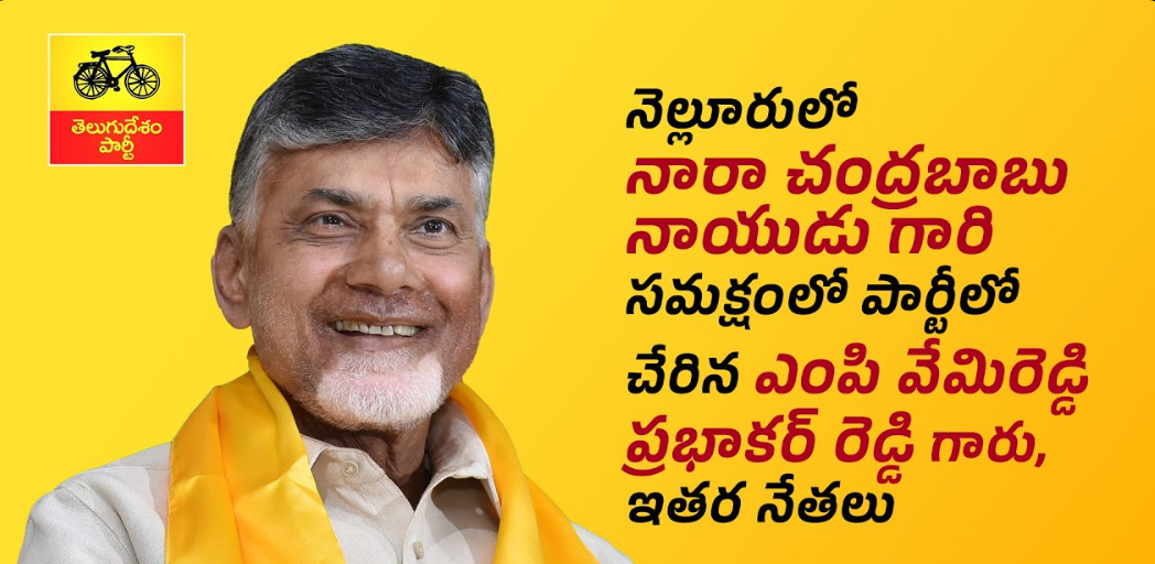 నెల్లూరులో చంద్రబాబు గారి సమక్షంలో పార్టీలో చేరిన ఎంపి వేమిరెడ్డి ప్రభాకర్ రెడ్డి గారు, ఇతర నేతలు
