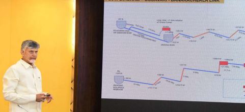 ‘గోదావరి నుంచి సముద్రంలోకి వృధాగాపోయే 3 వేల టీఎంసీ నీటిలో కనీసం 300 టీఎంసీ నీటిని ఒడిసిపట్టడమే ఈ ప్రాజెక్టు చేపట్టడం వెనుక ముఖ్య ఉద్దేశం. ఈ ప్రాజెక్టు పూర్తైతే 80 లక్షల మందికి తాగునీరు, 7.5 లక్షల ఎకరాల అదనపు ఆయకట్టు సాగులోకి వస్తుంది. మూడు దశల్లో బనకచర్ల ప్రాజెక్టు పూర్తి చేసేందుకు ప్రణాళికలు రూపొందించాము. పోలవరంనుంచి కృష్ణా నదికి నీరు మళ్లించడం మొదటి దశ కాగా, రెండోదశలో బొల్లాపల్లి జలాశయం నిర్మించి నీళ్లు తరలిస్తాము. మూడోదశలో బొల్లాపల్లి రిజర్వాయర్ నుంచి బనకచర్లకు నీటిని మళ్లిస్తాము. గోదావరి నీటిని కృష్ణా నదికి.. దానినుంచి నాగార్జున సాగర్ కుడి కాలువ ద్వారా బొల్లాపల్లి రిజర్వాయర్కు.. అక్కడి నుంచి బనకచర్ల హెడ్ రెగ్యులేటర్కు తరలిస్తాము. ఈ ప్రాజెక్టు పూర్తైతే రాయలసీమ రతనాలసీమగా మారుతుంది. పెన్నా నది ద్వారా నెల్లూరుకు నీరు ఇవ్వొచ్చు. వెలుగొండ ప్రాజెక్టు పూర్తి చేసి ప్రకాశం జిల్లాలో కరవును అరికట్టవచ్చు’ అని ముఖ్యమంత్రి పవర్ పాయింట్ ప్రజెంటేషన్లో వివరించారు.