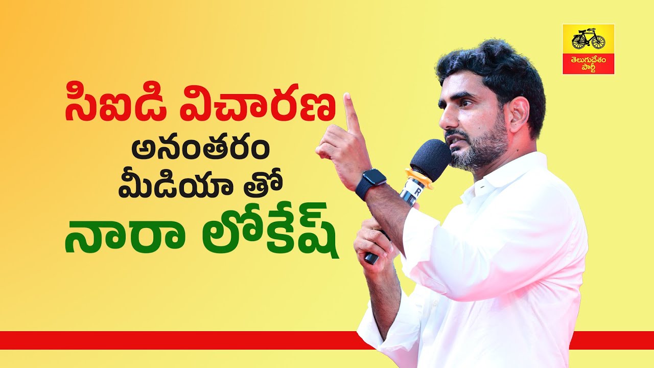సిఐడి విచారణ అనంతరం మీడియాతో మాట్లాడుతున్న టిడిపి జాతీయ ప్రధాన కార్యదర్శి నారా లోకేష్.