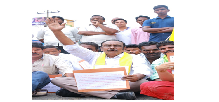 నరసరావుపేట: వైసీపీ పాలనలో దళితులకు జరుగుతున్న అన్యాయాన్ని నిరసిస్తూ నరసరావుపేట తెలుగుదేశం పార్టీ కార్యాలయం వద్ద టీడీపీ నాయకులు, కార్యకర్తలు ఆందోళనకు దిగారు. రాష్ట్రంలో దళితులపై జరుగుతున్న దాడులు, దళిత మహిళలపై అత్యాచారాలకు నిరసనగా, వైసిపి ప్రభుత్వం రద్దు చేసిన దళిత సంక్షేమ పథకాల సాధన కోసం టీడీపీ ఎస్సీసెల్‌ రాష్ట్ర అధ్యక్షుడు ఎంఎస్‌.రాజు ఆధ్వర్యంలో విజయవాడలో నిర్వహిస్తున్న దళిత గర్జన కార్యక్రమాన్ని పోలీసులు అడ్డుకొని ముందస్తు హౌస్‌ అరెస్టులు చేశారు. విజయవాడ ధర్నా చౌక్‌ వద్ద జరుగుతున్న దళిత గర్జనకు టీడీపీ నాయకులతో కలసి పయనమైన నరసరావుపేట నియోజకవర్గ టీడీపీ ఇన్‌ఛార్జ్‌ చదలవాడ అరవింద బాబు, దళిత నాయకులను టీడీపీ కార్యాలయం వద్ద ముందస్తుగా పోలీసులు అరెస్టు చేశారు. ఈ సందర్భంగా చదలవాడ అరవిందబాబు మాట్లాడుతూ ఎస్సీ, ఎస్టీ చట్టాన్ని నీరుగార్చిందని, దళితులపై దాడులు నిత్వకృత్యమయ్యాయి అన్నారు. ఎప్పుడు లేని విధంగా పల్నాడు జిల్లాలో హత్యా రాజకీయాలు జరుగుతున్నాయన్నారు. వైసీపీ పాలనలో విష సంస్కృతిని తీసుకువచ్చారని ఎద్దేవా చేశారు. దళితుల కోసం కేటాయించిన వేల కోట్ల సబ్‌ప్లాన్‌ నిధులను వైసీపీ పాలకులు దారి మళ్లించారని తిరిగి ఆనిధులన్నింటినీ రాబట్టి దళితుల సంక్షేమానికి కేటాయించాలి డిమాండ్‌ చేశారు. ఈ కార్యక్రమంలో టీడీపీ నాయకులు బాలు, శ్యామ్‌, చిన్న, మధు, ఏసుబాబు, చిన్న, రమేష్‌, రవి, బుడ్డయ్య, కోటేశ్వరరావు, మరియబాబు, దావీదు, కాంతారావు, మాబు, రామిరెడ్డి, హనుమంతరావు, ప్రసాద్‌, సుబ్బారావు, రాంబాబు, నాగేశ్వరరావు, రఫీ, రాయప్ప, బంగారం, ఆగస్టిన్‌, విశేశ్వరవు, సింధు, ఖాసీం తదితరులు పాల్గొన్నారు.