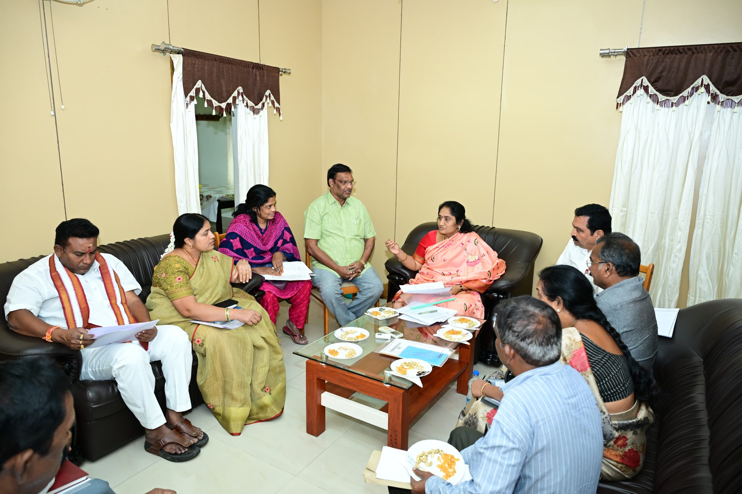 తిరుపతి (చైతన్యరథం): కార్పొరేట్ విద్యా సంస్థలకు దీటుగా రాబోయే పదో తరగతి పరీక్షల్లో బీసీ హాస్టళ్లలో వంద శాతం మేర ఫలితాలు రావాలని రాష్ట్ర బీసీ, ఈడబ్ల్యూఎస్ సంక్షేమ, చేనేత, జౌళి శాఖల మంత్రి ఎస్.సవిత స్పష్టం చేశారు. ఇందుకోసం విద్యార్థులకు అవసరమైన స్టడీ మెటీరియల్ అందజేయాలని, వెనుకబడిన విద్యార్థులపై ప్రత్యేక దృష్టి సారించి స్పెషల్ క్లాస్లు నిర్వహించాలని ఆదేశించారు. శనివారం తిరుపతిలోని పద్మావతి గెస్ట్ హౌస్ లో జిల్లా బీసీ సంక్షేమ శాఖాధికారులతో మంత్రి సవిత సమీక్షా సమావేశం నిర్వహించారు. మరో నెల రోజుల్లో జరగనున్న పదో తరగతి పరీక్షల నేపథ్యంలో బీసీ హాస్టళ్లు, గురుకుల పాఠశాలల విద్యార్థుల ప్రిపరేషన్ గురించి అడిగి తెలుసుకున్నారు. హాస్టళ్ల సిబ్బంది అప్రమత్తంగా ఉండాలని, విద్యార్థులను ఒత్తిడికి గురిచేయకుండా, పరీక్షలకు సిద్ధమయ్యేలా సన్నద్ధం చేయాలన్నారు. పాఠాలపై అవగాహన కలిగేలా బోధించాలన్నారు. విద్యార్థుల తల్లిదండ్రుల నమ్మకం నిలబెట్టుకునేలా కార్పొరేట్ విద్యా సంస్థలకు దీటుగా పదో తరగతిలో ఫలితాలు వచ్చేలా కృషి చేయాలన్నారు.