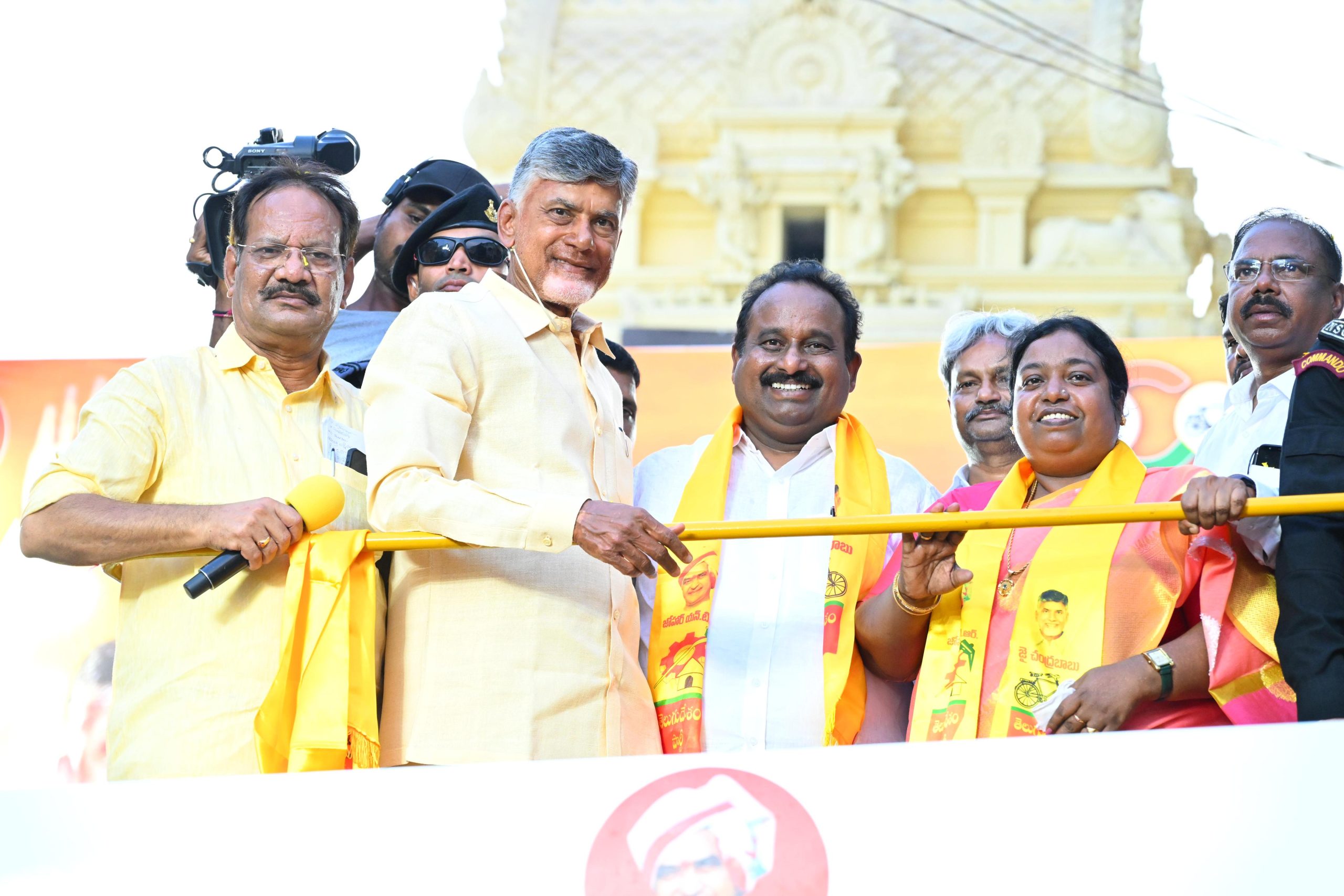 కేంద్రంలో ఎన్డీఏ ప్రభుత్వం 400 సీట్లు గెలవబోతుంది. ఏపీలో 150కి పైగా సీట్లు రావాలి. అందుకే వైనాట్ పులివెందుల అంటున్నాం. బాబాయ్ని గొడ్డలి వేసినందుకు జగన్కు ఓటు వేయాలా? 25కి 25 ఎంపీలు ఎన్డీఏనే గెలవాలి. నీతి నిజాయితీకి చిరునామాగా ఉన్న కృష్ణప్రసాద్ని ఎంపీగా గెలిపించాలి. ఐదోసారి ఆనంద్ బాబు ఎమ్మెల్యే అభ్యర్ధిగా మీ ముందుకు వచ్చారు. కూటమి అభ్యర్థులను గెలిపించి `నియోజకవర్గ ప్రగతికి బాటలు వేయాలని చంద్రబాబు ప్రజలకు పిలుపునిచ్చారు.