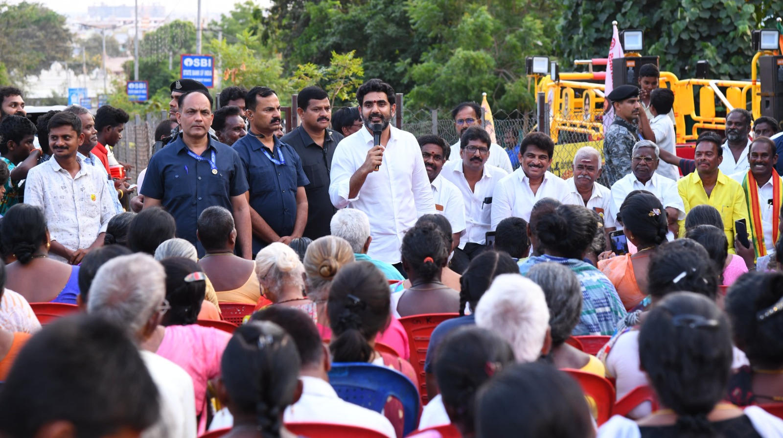 మీ అందరి ఆశీస్సులతో ఎమ్మెల్యేగా ఎన్నికయ్యాక పేదరికంలేని నియోజకవర్గంగా మంగళగిరి తీర్చిదిద్దడం నా సంకల్పం, అహర్నిశలు శ్రమించి ఆ లక్ష్యాన్ని సాధించి తీరుతా. మంగళగిరి పరిధిలో మరో 10 వీవర్స్శాలలను ఏర్పాటుచేసి చేనేతల ఆదాయం పెంచుతాం. 2019లో ఓటమి నాలో కసి పెంచింది, మంగళగిరి సొంతమని భావించి, ప్రజల మనసు గెలవాలని నిర్ణయించుకున్నా. సొంత నిధులతో 29 సంక్షేమ పథకాలు అమలు చేశాను. చేనేతల ఆదాయం పెంచేందుకు వీవర్స్శాలను ఏర్పాటుచేశా. జకార్డ్ మగ్గాలు, అధునాతన డిజైన్లు, డైస్ తెచ్చాం. అధికారంలోకి వచ్చాక భూగర్భ డ్రైనేజితో మురుగునీటి సమస్యకు శాశ్వత పరిష్కారం చూపుతాం, కృష్ణానదినుంచి పైప్లైన్ వేసి ప్రతి ఇంటికీ కుళాయిద్వారా తాగునీరు అందజేస్తాం. ప్రజలు నా చుట్టూ తిరగడం కాదు, నేనే ప్రజలచుట్టూ తిరిగి అభివృద్ధి చేస్తా. సమస్యలన్నీ పరిష్కరించి దమ్ము, ధైర్యంతో ప్రజలముందు నిలబడతానని లోకేష్ అన్నారు.