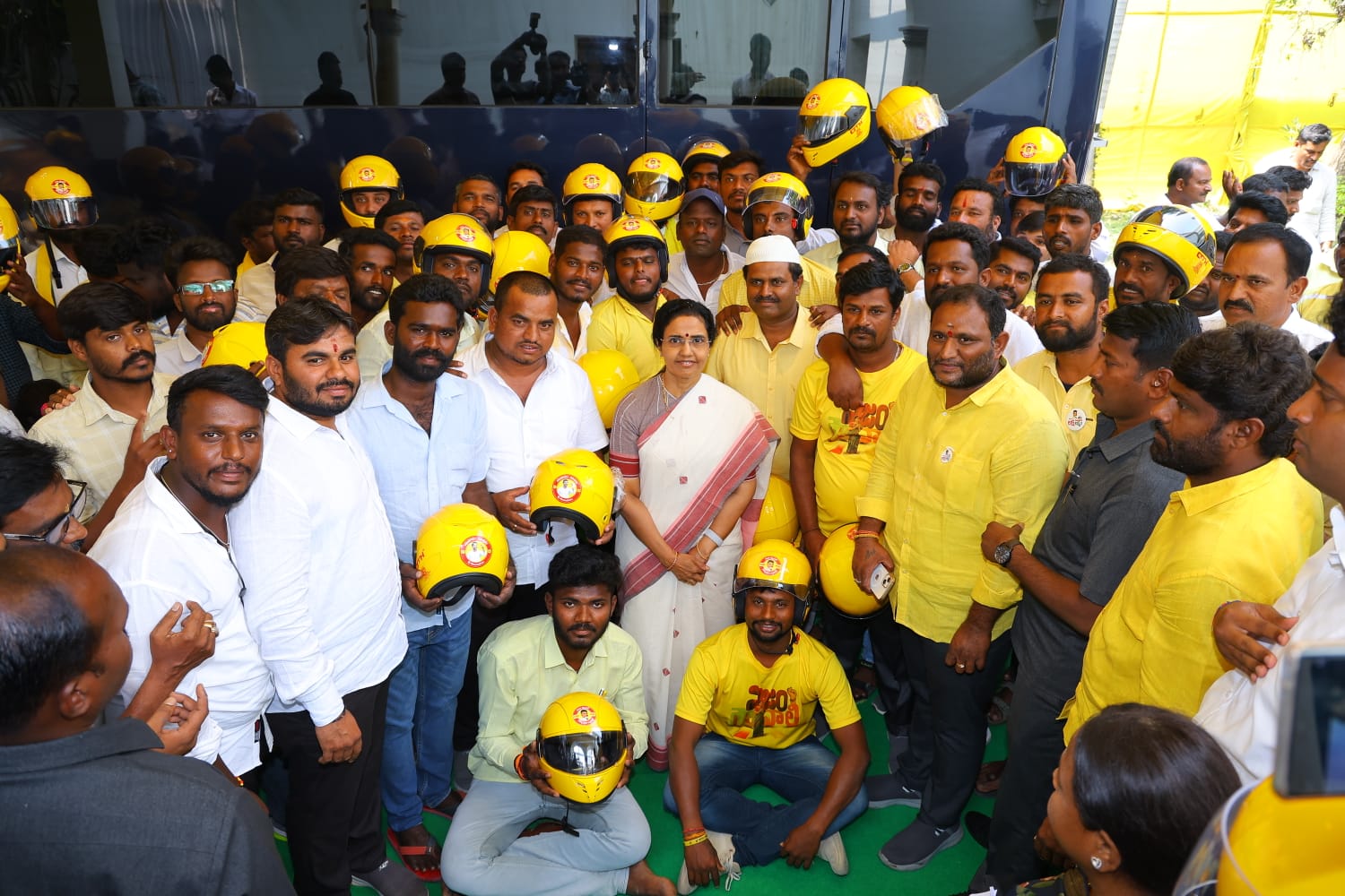 కుప్పం: టీడీపీ కార్యకర్తలను పార్టీ అధినేత చంద్రబాబు నుండి ఎవరూ వేరు చేయలేరని నారా భువనేశ్వరి అన్నారు. చంద్రబాబుకోసం కుప్పం నియోజకవర్గంలో 23 రోజులు సైకిల్ యాత్ర చేసిన యువకులకు భువనమ్మ బుధవారం అభినందించారు. వారికి హెల్మెట్లు అందజేశారు. ఈ సందర్భంగా ఈ సందర్భంగా కుప్పం యువతను ఉద్దేశించి భువనమ్మ మాట్లాడుతూ చంద్రబాబు కోసం 23రోజులు సైకిల్ యాత్ర చేయడం చాలా అభినందనీయమన్నారు. మిమ్మల్ని చంద్రబాబు నుండి ఎవరూ వేరు చేయలేరన్నారు. మీ సహకారంతోనే చంద్రబాబు ఉమ్మడి రాష్ట్రానికి, విభజిత ఆంధ్రప్రదేశ్కి ఎన్నో కార్యక్రమాలు చేయగలిగారు. టీడీపీ కార్యకర్తలే చంద్రబాబుకి కొండంత బలం, ధైర్యం. మీకోసం, మీ భవిష్యత్తుకోసం ఇంకా చాలా మంచి కార్యక్రమాలు చేయాలని చంద్రబాబు ఆలోచిస్తున్నారు. మాకు, చంద్రబాబుకి పదవులపై ఆశ లేదు… యువత భవిష్యత్తును నిలబెట్టాలనేదే చంద్రబాబు ఆశ. మీ భవిష్యత్ కోసం రాబోయే ఎన్నికలు పారదర్శకంగా నిర్వహించుకునే బాధ్యత యువతపైనే ఉంది. యువత చేతిలోనే రాష్ట్ర భవిష్యత్తు ఉంది.. పోరాడి అయినా యువత ఎన్నికల్లో నిజాయితీగా పోలింగ్ జరిగేలా చూడాలి. పోలింగ్బూత్ల్లో యువత ప్రధాన పాత్ర పోషించాలి. ద్విచక్ర వాహనాలు నడిపే యువత హెల్మెట్ తప్పనిసరిగా వాడాలి.. అలాగే హెల్మెట్కి ఉన్న క్లిప్ కూడా తప్పనిసరిగా పెట్టుకోవాలి. యువత దేశానికి చాలా అవసరం… దేశం కోసం యువత నిలబడాలి.. ప్రాణాలను నిర్లక్ష్యం చేయకూడదని భువనేశ్వరి హితవు పలికారు.