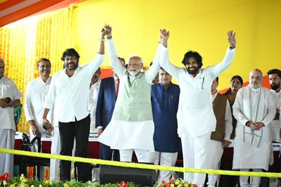 - మెగా సోదరులతో కలిసి ప్రజలకు అభివాదం చేసిన ప్రధాని