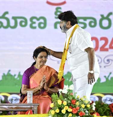 గన్నవరం: చంద్రబాబు ప్రమాణ స్వీకారోత్సవంలో నందమూరి బాలకృష్ణ ఎంతో ఉత్సాహంగా అన్నీ తానై వ్యవహరించారు. వేదికపైకి అతిథులను ఆహ్వానించడం, వారికి సరైన సదుపాయాలు అందేలా చూడడం వంటి పనులతో బాలయ్య బిజీగా కనిపించారు. ఈ క్రమంలో ఆయన తన సోదరి నారా భువనేశ్వరి నుదుటిపై ఆప్యాయంగా ముద్దాడారు. అవధుల్లేని ఆనందాన్ని ఎవరైనా సరే కుటుంబ సభ్యులతోనే షేర్ చేసుకుంటారు. దీనికి ఎవరూ అతీతులు కారు. సరిగ్గా సినీ నటుడు, హిందూపురం బాలకృష్ణ విషయంలో ఇదే జరిగింది. తెలుగుదేశం పార్టీ అధికారంలోకి రావడం, చంద్రబాబు నాయుడు ముఖ్యమంత్రిగా ప్రమాణ స్వీకారం చేయడంతో కార్యక్రమానికి బాలకృష్ణ హాజరయ్యారు. ప్రమాణ స్వీకార వేదికపై చంద్రబాబు నాయుడు సతీమణి, బాకలృష్ణ సోదరి భువనేశ్వరి ఉన్నారు. ఆమెను చూసిన వెంటనే బాలకృష్ణ.. భువనేశ్వరి నుదుటిపై ముద్దు పెట్టి ఆత్మీయంగా పలకరించారు. భువనేశ్వరిని ఆ వేదికపై చూసి ఎమోషనల్ అయిన బాలకృష్ణ.. సోదరుడిగా నుదుటిపై ముద్దు పెట్టి తన సంతోషాన్ని పంచుకున్నారు. బాలకృష్ణకు సంబంధించిన ఈ దృశ్యం సోషల్ మీడియాలో ట్రెండ్ అవుతోంది. అలాగే నందమూరి బాలకృష్ణ సభ మొత్తం తిరుగుతూ అందరినీ పలకరిస్తూ, తన అక్కలు ఇద్దరినీ ఎంతో ఆప్యాయంగా పలకరించారు.