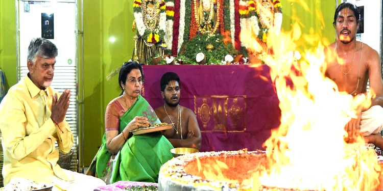 అమరావతి, చైతన్యరథం: తెలుగుదేశంపార్టీ జాతీయ అధ్యక్షులు నారా చంద్రబాబు నాయుడు ఉండవల్లి నివాసంలో శుక్రవారం చండీయాగం, సుదర్శన నారసింహ హోమం నిర్వహించారు. శుక్రవారం నుంచి మూడు రోజుల పాటు జరిగే శతచండీ పారాయణ ఏకోత్తర వృద్ది మహాచండీ యా గం, సుదర్శన నారసింహ హోమంలో భాగంగా మొదటి రోజు యజ్ఞ క్రతువులు నిర్వహించారు. ఉదయం 9 గంటల నుంచి ప్రత్యేక పూజలు, హోమాలు జరిపారు. ప్రజలందరికీ మేలు జరగాలని, రాష్ట్రం సుభిక్షంగా ఉండాలని ఈ సంద ర్భంగా చంద్రబాబు-భువనేశ్వరి దంపతులు ప్రార్థించారు. గుంటూరుకు చెందిన వేద పండితులు శ్రీనివాసాచార్యుల వారి పర్యవేక్షణలో 40మంది రిత్వికులు యాగం నిర్వహించా రు. శని, ఆదివారాల్లో కూడా యజ్ఞహోమాది కార్యక్రమాలు జరగనున్నాయి. కృష్ణా, గుంటూరు జిల్లాలకు చెందిన పలు వురు పార్టీ నేతలు కుటుంబ సభ్యులతో కలిసి యాగంలో పాల్గొన్నారు.