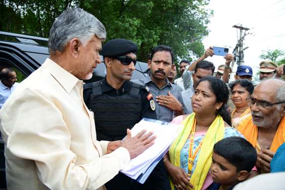 ఉండవల్లి (చైతన్యరథం): ముఖ్యమంత్రి నారా చంద్రబాబు నాయుడు పెద్ద మనసు చూపించుకున్నారు. కాన్వాయ్ ఆపి మరీ సామాన్య ప్రజలను కలిసి వినతులు స్వీకరించారు. ఉండవల్లిలోని తన నివాసం నుంచి శుక్రవారం సచివాలయానికి వెళుతున్న సమయంలో కరకట్టపై ఉన్న ప్రజలను చూసి తన కాన్వాయ్ను ఆపారు. సమస్యలపై వినతులు అందించేందుకు వచ్చిన ప్రజలను పిలిచి మాట్లాడారు. వివిధ జిల్లాల నుంచి వచ్చిన పలువురు తమ సమస్యలు చెప్పుకున్నారు. అనంతరం వారి నుండి వినతిపత్రాలు తీసుకున్నారు. సమస్యలను పరిష్కరిస్తానని సీఎం చంద్రబాబు నాయుడు స్వయంగా కారుదిగి వచ్చి హామీ ఇవ్వడంతో బాధితులు సంతోషం వ్యక్తం చేశారు.