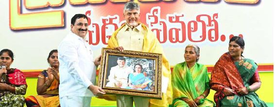 ఈ సందర్భంగా ప్రభుత్వ విప్ కాలవ శ్రీనివాసులు.. సీఎం చంద్రబాబు, ఆయన సతీమణి కలిసి ఉన్న చిత్రపటాన్ని జ్ఞాపికగా అందజేసి ముఖ్యమంత్రిని శాలువాతో సత్కరించారు. అనంతరం ఎన్టీఆర్ భరోసా పథకం పెన్షన్ లబ్ధిదారురాలు భాగ్యమ్మ కుటుంబానికి ఆర్థికంగా ఆదుకోవడానికి రెండు లక్షల రూపాయల చెక్కును రాష్ట్ర ముఖ్యమంత్రి అందజేశారు.