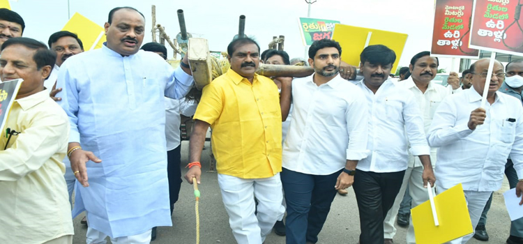 ఎండ్లబండి కాడెలాగి టిడిపి సభ్యుల వినూత్న నిరసన