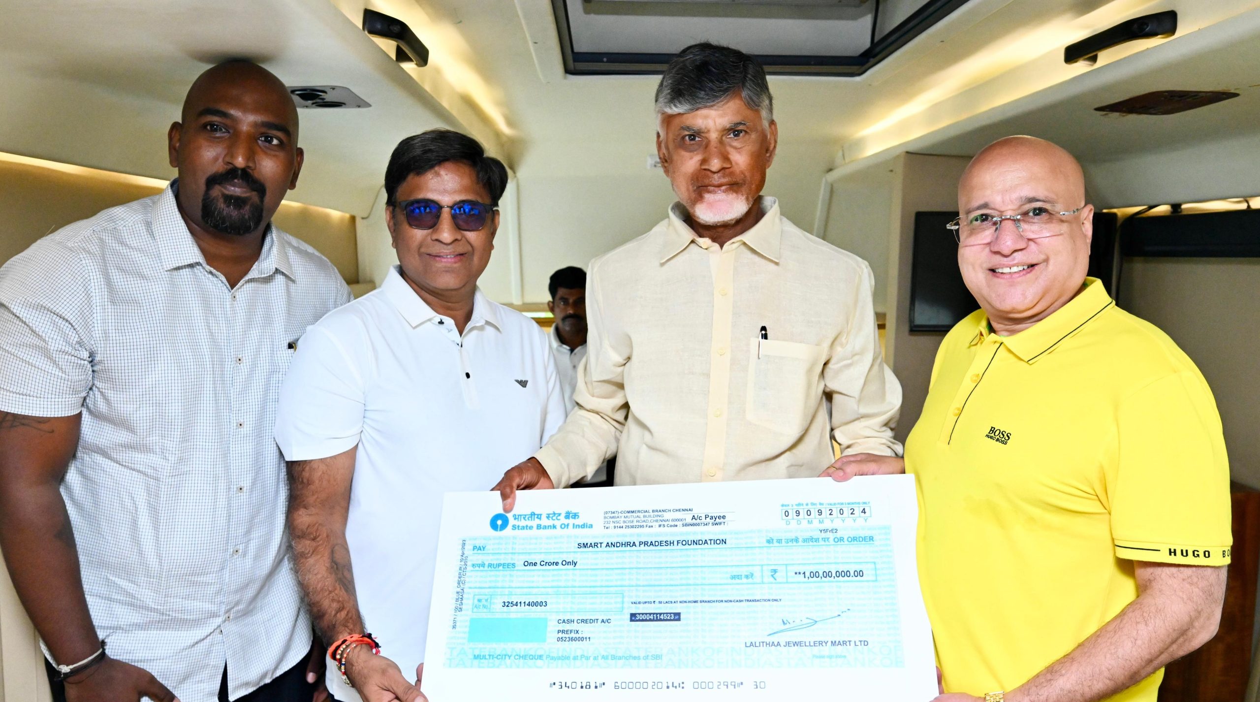 విజయవాడ(చైతన్యరథం): ముఖ్యమంత్రి చంద్రబాబు 74 ఏళ్ల వయసులోనూ వరద బాధిత ప్రాంతాల్లో సహాయ కార్యక్రమాలను నిర్విరామంగా పర్యవేక్షిస్తూ ఎంతో కష్టపడుతున్నారని లలితా జ్యూయలర్స్ అధినేత కిరణ్ ప్రశంసించారు. విజయవాడ వరద బాధితుల కోసం కిరణ్ రూ.కోటి విరాళం ఇచ్చారు. సోమవారం సీఎం చంద్రబాబును కలిసి విరాళం అందజేశారు. ఈ సందర్భంగా కిరణ్ మాట్లాడుతూ వరద బాధితుల కోసం రూ. కోటి విరాళం ఇస్తున్నాను.. అందరూ కూడా తోచిన సాయం చేయాలని కోరారు. వరద బాధితులను ఆదుకునేందుకు ప్రభుత్వం శాయశక్తులా కృషి చేస్తోందన్నారు. ఇది ప్రభుత్వానికి అండగా నిలబడాల్సిన సమయం అన్నారు. డబ్బులు ఊరికే రావు.. కానీ సంపాదించిన సొమ్మును దానం చేసినప్పుడే దానికి ఒక సార్ధకత ఉంటుందన్నారు. రూ.10, రూ. 100 ఎంతైనా సరే ఎవరి స్థోమతను బట్టి వారు వరద బాధితుల కోసం సాయం చేసేందుకు ముందుకు రావాలన్నారు.