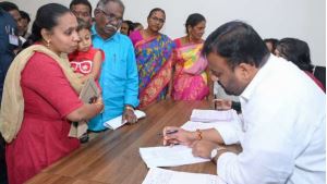 అమరావతి (చైతన్య రథం): వైసీపీ హయాంలో సాగిన భూకబ్జాలపై బాధితులు గ్రీవెన్స్కు అర్జీలు అందిస్తూనే ఉన్నారు. గురువారం టీడీపీ కేంద్ర కార్యాలయంలో నిర్వహించిన ప్రజా వినతుల స్వీకరణలో ఎమ్మెల్సీ పంచుమర్తి అనురాధ, మంత్రి మండిపల్లి రాంప్రసాద్రెడ్డి, ఏపీ మహిళా సహకార ఆర్థిక సంస్థ చైర్పర్సన్ కావలి గ్రీష్మలు వినతులు స్వీకరించి సమస్యల పరిష్కారానికి కృషి చేశారు. కృష్ణా జిల్లా బాపులపాడు మండలం మల్లవల్లి గ్రామానికి చెందిన బోకినాల సాంబ శివరావు అర్జీని ఇస్తూ.. వల్లభనేని వంశీ అనుచరుడు తప్పుడు పత్రాలతో భూమిని కబ్జా చేయాలని యత్నిస్తున్నాడని.. దయచేసి అధికారులు తన సమస్యను పరిష్కరించాలని పేర్కొన్నారు. కడప జిల్లా యర్రగుంట్లకు చెందిన మైలాపురం చక్రవర్తి విజ్ఞప్తి చేస్తూ.. తనకు గత టీడీపీ ప్రభుత్వంలో టిక్కో ఇళ్లు మంజూరు చేశారని.. అయితే తరుతవాత వచ్చిన వైసీపీ ప్రభుత్వం అర్హుల జాబితానుండి తన పేరును తొలగించి అన్యాయం చేశారని, తనకు టిక్కో ఇళ్లు ఇచ్చి న్యాయం చేయాలని గ్రీవెన్స్లో అర్జీ ఇచ్చారు. కడప జిల్లా రామేశ్వరం గ్రామానికి చెందిన రవణమ్మ విజ్ఞప్తి చేస్తూ.. తాను అన్ని పర్మిషన్లు తీసుకొని బోరువేసుకున్నాక తమ ఊరిలో ఉండే వ్యక్తి కాడె పెద్ద ఓబయ్య తన బోర్ పక్కనే ఎటువంటి అనుమతులు లేకుండా బోర్వేసి అక్రంగా కరెంట్ వాడుతున్నాడని.. అతనిపై చర్యలు తీసుకోవాలని ఫిర్యాదు చేస్తే.. అధికారులు అతనివద్ద లంచం తీసుకొని అన్ని అనుమతులు ఉన్న తన బోర్ను అక్రమంగా సీజ్ చేశారని దీనిపై అధికారులు విచారించి తనకు న్యాయం చేయాలని గ్రీవెన్స్లో అర్జీ ఇచ్చి వేడుకున్నారు.
