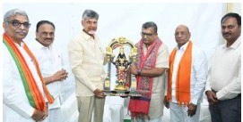 అమరావతి (చైతన్యరథం): దేవాలయాలకు స్వయం ప్రతిపత్తి కల్పించాలని సీఎం చంద్రబాబును విశ్వహిందూ పరిషత్ (వీహెచ్పీ) నేతలు కోరారు. వీహెచ్పీ అఖిల భారత సంఘటన ప్రధాన కార్యదర్శి మిలింద్ పరాండే, అఖిల భారత ఉపాధ్యక్షుడు గోకరాజు గంగరాజు.. సీఎం చంద్రబాబుని కలిసి దేవాలయాలకు స్వయం ప్రతిపత్తి కల్పించే విషయమై వీహెచ్పీ రూపొందించిన ముసాయిదా ప్రతిని అందించారు. అంతే కాకుండా విజయవాడలో వచ్చే ఏడాది జనవరి 5న జరగబోయే ‘హైందవ శంఖారావం’ బహిరంగ సభ వివరాలను కూడా తెలియజేశారు. సీఎం చంద్రబాబును కలిసిన వారిలో గుమ్మళ్ళ సత్యం, శ్రీవేంకటేశ్వర్లు, దుర్గ ప్రసాద రాజు, రవికుమార్ ఉన్నారు.