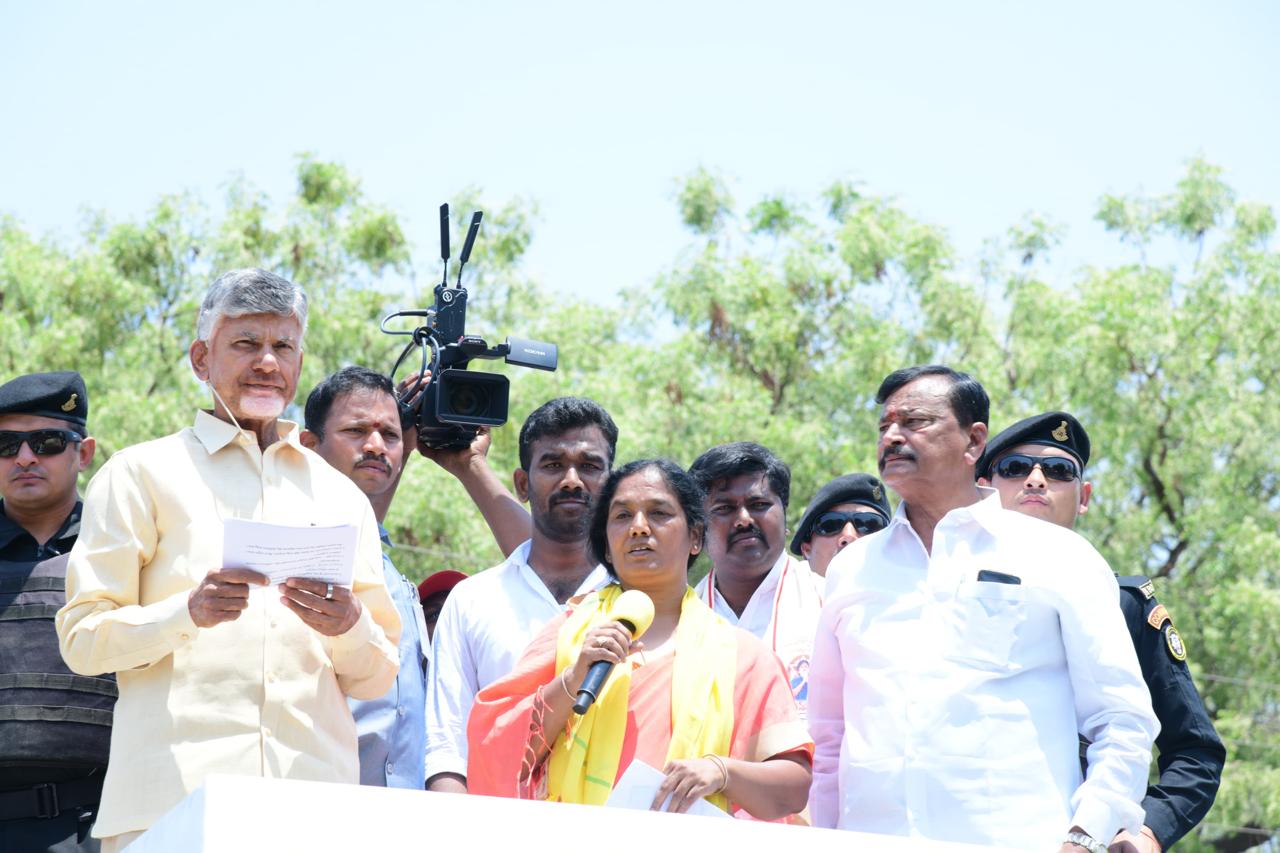 ఆడబిడ్డ నిధి పథకం కింద ప్రతి కుటుంబంలోని ఆడబిడ్డకూ ప్రతి నెలా రూ.1500 అందిస్తామన్నారు. ఒక కుటుంబంలో ఎంతమంది ఆడబిడ్డలుంటే అంద రికీ పథకంకింద సాయం అందుతుందని చంద్రబాబు హామీ ఇచ్చారు.అలాగే`ప్రతి కుటుంబంలో ప్రతి విద్యా ర్థికీ తల్లికి వందనం పథకం కింద ఏటా రూ.15వేలు ఇస్తామన్నారు. ఎంత మంది విద్యార్థులుంటే అందరికీ ఇది వర్తిస్తుందని చెబుతూ.. అమ్మఒడి పథకం కింద జగన్‌రెడ్డి ఇదే తరహా హామీనిచ్చి దారుణంగా దగా చేశాడని గుర్తు చేశారు. జనాభా మన సంపద, మీరు పిల్లల్ని చదివిస్తే ప్రపంచాన్ని జయిస్తారు. కుటుంబాల ను కళ్లలో పెట్టుకుని చూసుకునే శక్తి మాతమ్ముళ్లకుంది అంటూ చంద్రబాబు సభికులను ఉత్సాహపర్చారు. దీపం పథకం కింద ఏటా 3 సిలెండర్లు మహిళలకు ఇస్తామని, ఎర్రబస్సుల్లో ఉచితప్రయాణ సౌకర్యం కల్పి స్తామని చెప్పారు.రాష్ట్రంలోని మహిళా శక్తిని ప్రపంచం లోనే అత్యంత శక్తివంతంగా తీర్చిదిద్దే ప్రణాళిక అమ లు చేస్తామని, పరిశ్రమలు తీసుకువచ్చి ఏటా 4లక్షల చొప్పున ఐదేళ్లలో 20 లక్షల ఉద్యోగాలు కల్పిస్తానని హామీ ఇచ్చారు. ఉద్యోగం వచ్చే వరకు రూ.3వేలు నిరుద్యోగ భృతి ఇస్తామని, తొలి సంతకం మెగా డీఎస్సీ మీదే పెడతా నని, అనంతపురానికి వెళ్లే పనిలేకుండా రాప్తాడులోనే పనిచేసేలా ఉద్యోగ పథకాలు రూపొంది స్తామని హామీఇచ్చారు. మంచి నీటి రక్షణపథకం కింద కుళాయి ద్వారా నీళ్లిస్తామన్నారు. బీసీలంటే అత్యంత ప్రీతి పాత్రం. 50ఏళ్లకే పెన్షన్‌, బీసీలకు రక్షణచట్టం, బీసీల కోసం స్పెషల్‌ సబ్‌ ప్లాన్‌, ఆంక్షలు లేకుండా మొదటి తారీఘున రూ.4వేలు పింఛన్‌ ఇచ్చే ‘డిక్లరేషన్‌’ సిద్ధం చేసి ఉంచామన్నారు.పింఛన్‌ పథకాన్ని ఎన్టీఆర్‌ ప్రారం భిస్తే.. రూ.200 నుంచి రూ.2000 పింఛన్‌ పెంచింది తెలుగుదేశం పార్టీయేనన్నారు. రైతులందరికి డ్రిప్‌ ఇరిగేషన్‌, సబ్సిడీ పథకాలు తిరిగి అమల్లోకి తెస్తానని, సాగునీటి ప్రాజెక్టులు పూర్తి చేసి రైతును రాజు చేసే బాధ్యత తీసుకుంటామన్నారు.