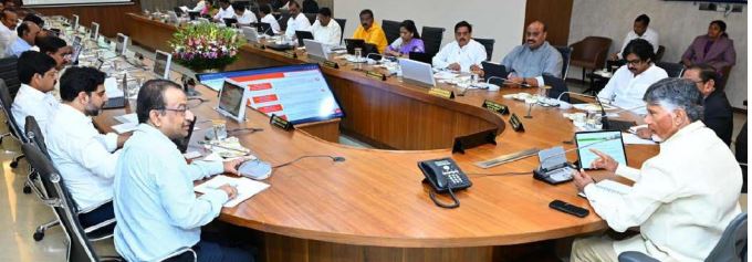 అమరావతి (చైతన్యరథం): ఎన్నికల సమయంలో ఇచ్చిన మరికొన్ని హామీల అమలుకు ముఖ్యమంత్రి చంద్రబాబు నిర్ణయం తీసుకున్నారు. రాష్ట్ర సచివాలయంలో ముఖ్యమంత్రి అధ్యక్షతన గురువారం జరిగిన ఏపీ కేబినెట్ సమావేశంలో సూపర్సిక్స్ పథకాలను అమలు చేసేందుకు ఆమోదం తెలిపారు. వచ్చే విద్యాసంవత్సరం ప్రారంభంలోనే తల్లికి వందనం పథకాన్ని అమలు చేయాలని, పీఎం కిసాన్కు కేంద్రం డబ్బులు విడుదల చేసినప్పుడు రాష్ట్రంలో రైతులకు అన్నదాత సుఖీభవ నిధులు విడుదల చేయాలని నిర్ణయం తీసుకున్నారు. పాఠశాలల పునప్రారంభంలోపు మెగా డీఎస్సీ ద్వారా టీచర్ పోస్టుల భర్తీ చేయాలని మంత్రి మండలి నిర్ణయించింది.