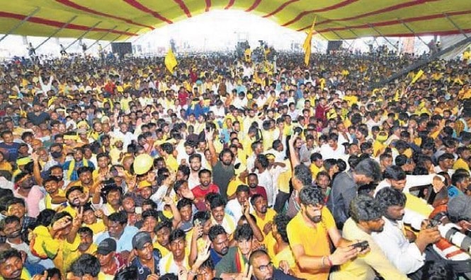 జాతీయరహదారి జనప్రవాహం తో నిండిపోయింది. మహానాడు సభాప్రాంగణం లక్షలాది జనసందోహంతో నిండిపోయింది. సభప్రాంగణంలో జాగా లేకపోవటంతో బయటనే లక్షలాది మంది నిలిచిపోయారు. దేశంలోనే కాదు, ప్రపంచవ్యాప్తంగా తెలుగుజాతి సత్తా ఈ మహానాడుతో ప్రస్ఫుటం అయింది. మహానాడు కుంభమేళా క్రమశిక్షణకు మారుపేరుగా నిలిచింది. సభకు హాజరైన ప్రతి ఒక్కరిలోనూ తెలుగుదేశం పార్టీని అధికారంలోకి తీసుకురావాలన్న కసి, పట్టుదల కానవచ్చింది. మహానాడు ఏర్పాట్లు ప్రారంభం అయినానాటినుంచే అధికార పార్టీ వివిధ రూపాలలో అడ్డంకులు సృష్టించటం, కవ్వింపు చర్యలకు పాల్పడటంతో టిడిపి శ్రేణుల్లో పట్టుదల రెట్టింపు అయింది. అదే స్ఫూర్తితో మహానాడుకు పసుపుసైన్యం కదం తొక్కింది. బహిరంగసభ ప్రారంభానికి ముందు హోరు గాలులు వీచి కొన్ని కటౌట్ లు కూలిపోయాయి.