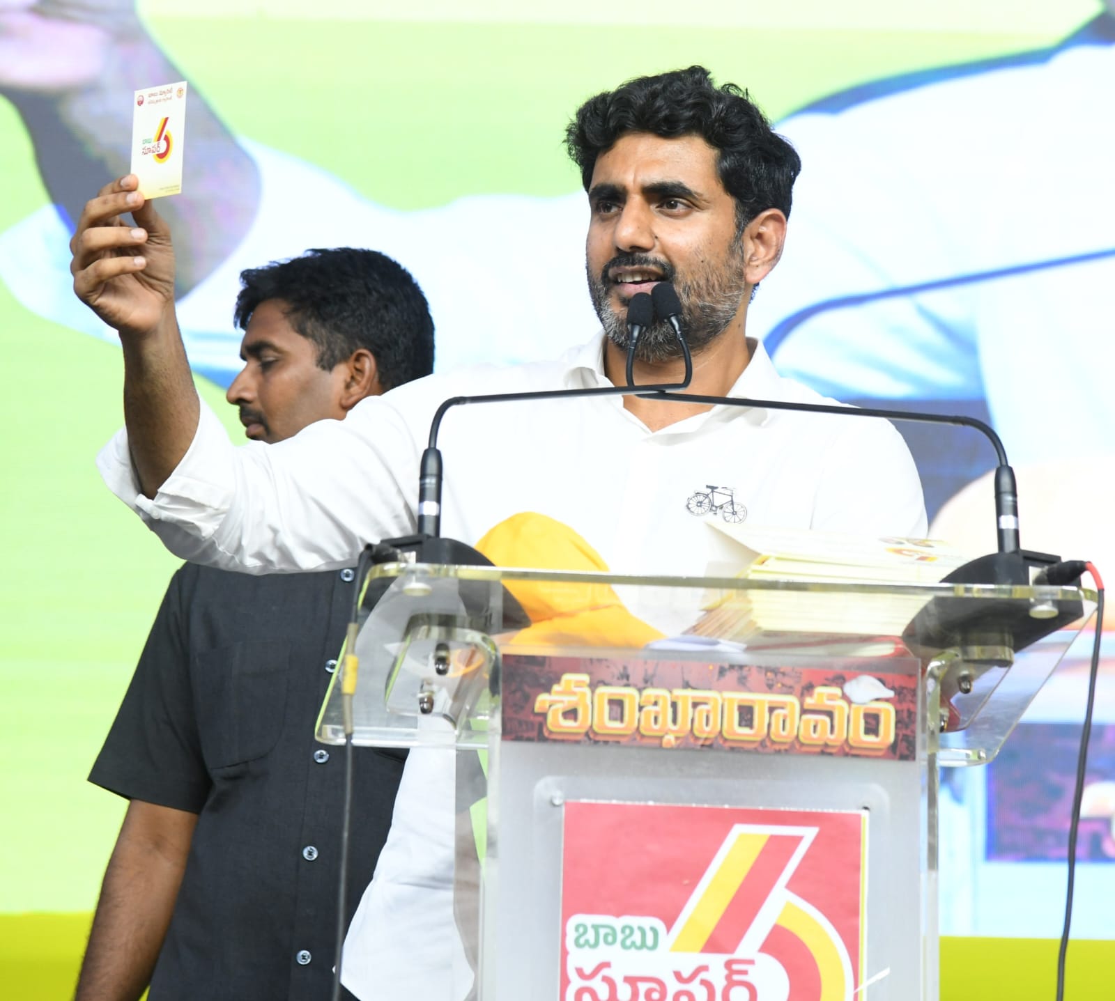 పవనన్న, చంద్రబాబు కలిసి బాబు సూపర్-6 హామీలు ప్రకటించారు. టీడీపీ-జనసేన ఏర్పడిన ఐదేళ్లలో యువతకు 20 లక్షల ఉద్యోగాలు కల్పిస్తాం. ఉద్యోగాలు వచ్చేవరకు ప్రతి నెల రూ.3వేలు నిరుద్యోగ భృతి కల్పిస్తాం. తల్లికి వందనం పేరుతో స్కూల్కు వెళ్లే ప్రతి విద్యార్థికి ఏడాదికి రూ.15వేలు ఇస్తాం. ఇంట్లో ఇద్దరుంటే 30వేలు, ముగ్గురుంటే రూ.45వేలు ఇస్తాం. రైతులను ఆదుకునేందుకు ప్రతి ఏడాదికి రూ.20వేలు ఆర్థిక సాయం చేస్తాం. ప్రతి ఇంటికి ఏడాదికి 3 గ్యాస్ సిలిండర్లు ఉచితంగా ఇస్తాం. ఇక 18 నుంచి 59 ఏళ్ల మహిళలకు నెలకు రూ.15వందల చొప్పున, ఏడాదికి రూ.18వేలు, ఐదేళ్లలో రూ.90వేలు చంద్రబాబు ఇవ్వ బోతున్నారు. మహిళలు ఆర్టీసీ బస్సుల్లో ఉచితంగా ప్రయాణించే హక్కు కూడా మన ప్రభుత్వం కల్పించ బోతోందని లోకేష్ వివరించారు.