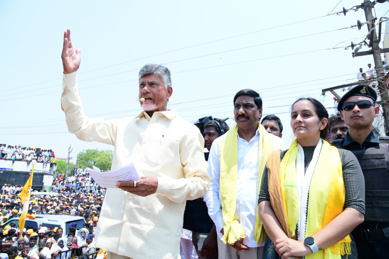 నెల్లూరు జిల్లాలో బుల్లెట్ దించుతానన్న వ్యక్తి ఇప్పు డు నర్సరాపుపేటలో పడ్డాడు. అక్కడ ఓటర్లు తంతే మళ్లీ చెన్నైలో పడతాడు. మంచి చెడులకు తేడా తెలి యకుండా మాట్లాడుతున్నారు. అన్ని వర్గాలను ఆదు కుంటాం, బడుగు బలహీన వర్గాలకు అండగా ఉంటా, పేదవాళ్లకు తోడుగా ఉంటాం. ఆదాయం పెంచి మెరు గైన జీవన ప్రమాణాలను తెచ్చేందుకు కృషిచేస్తాం. యానాదుల కోసం నేను ప్రత్యేకంగా ఐటీడీ పెట్టాను. యానాదుల కోసం కొత్తగా ప్రత్యేక కార్యక్రమాలు తెస్తా ను. మీ పిల్లలను చదివిస్తాను. ప్రపంచంలోని అన్ని కంపెనీలను అనుసంధానం చేసి మీ ప్రాంతం నుంచే పని చేసే విధంగా చేస్తాను.