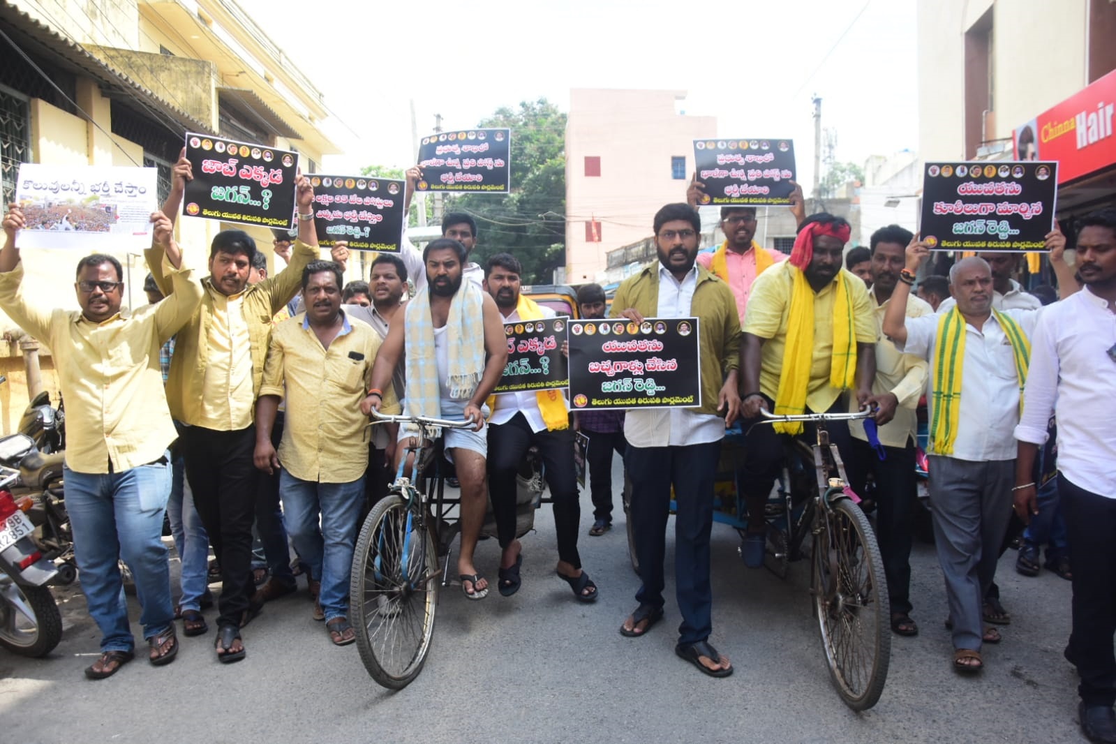 తిరుపతి : రాష్ట్ర ముఖ్యమంత్రి జగన్ రెడ్డి జాబు ఎక్కడా… అని తెలుగు యువత రాష్ట్ర ప్రధాన కార్యదర్శి రవి నాయుడు ప్రశ్నించారు. యువతను మోసం చేసిన ముఖ్యమంత్రి జగన్ రెడ్డిపై పోలీసులకు ఫిర్యాదు చేశారు. జాబ్ ఎక్కడ జగన్ రెడ్డి అని ప్రశ్నిస్తూ…. రిక్షా తొక్కుతూ పోలీస్ స్టేషన్ వరకు వెళ్లారు. పశ్చిమ పోలీస్ స్టేషన్లో ముఖ్యమంత్రి జగన్మోహన్ రెడ్డిపై ఫిర్యాదు చేశారు. ఈ సందర్భంగా రవినాయుడు మాట్లాడుతూ… రాష్ట్ర ముఖ్యమంత్రి జగన్ రెడ్డి అధికారంలోకి వస్తే తలరాతలు మారుతాయని, మీకు మేనమామగా మారుతానని మోసపూరితమైన మాటలను ఎన్నికల సమయంలో చెప్పారని విమర్శించారు. రెండు లక్షల 30 వేల ఉద్యోగాలను అధికారంలోకి వచ్చిన మొదటి సంవత్సరంలోనే భర్తీ చేస్తామని తెలియజేసిన విషయాన్ని గుర్తు చేశారు. అలాగే మెగా డీఎస్సీని ఏర్పాటు చేస్తానని.. పోలీస్ శాఖలో ఖాళీగా ఉన్న ప్రతి పోస్టు భర్తీ చేస్తామని హామీ ఇచ్చారని కూడా గుర్తు చేశారు.