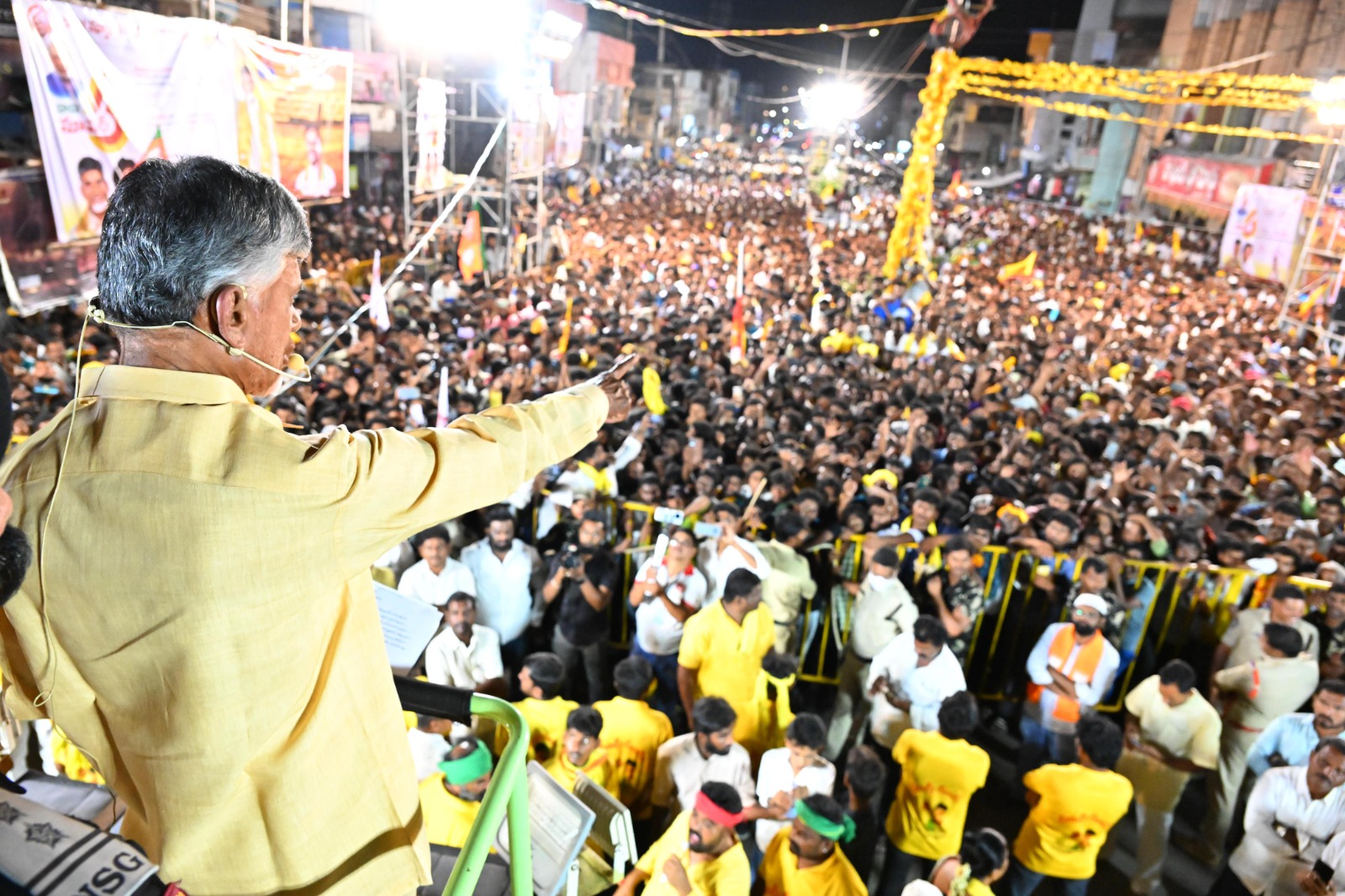 ఉద్యోగస్తులకు మొదటితారీఖునే జీతం ఇస్తాం. జిల్లాలో మొట్టమొదటిసారిగా వడ్డెర్లకు అధిక ప్రాధాన్యత ఇస్తూ వడ్డెర సామాజికవర్గానికి చెందిన వ్యక్తిని జిల్లా పార్టీ అధ్యక్షుడిగా నియమించాం. భవిష్యత్తులో వడ్డెర్లకు చట్టసభల్లో ప్రాతినిథ్యం కల్పిస్తాం. ఈ రాష్ట్రాన్ని కాపాడుకోవడం అందరి బాధ్యత. సంపద సృష్టించడం తెలిసిన పార్టీ తెలుగుదేశం పార్టీ. మీరు కూడా 46 రోజులు కష్టపడి దోపిడీ చేసే వైసీపీ పాలను తరిమికొట్టి మీ ద్వారా సంపద సృష్టించి పేదలకు అండగా నిలిచేది ఎన్డీఏ కూటమి. పేదవాళ్లను అప్పుల ఊబిలోకి నెట్టే పార్టీల వల్ల ఎలాంటి ఉపయోగం లేదు. ఈ రాష్ట్రంలో గత ఐదేళ్లలో జగన్ మోహన్ రెడ్డి తప్ప ఎవరూ బాగుపడలేదు. ఇసుక, మద్యంలో ముడుపులు, ఖనిజ సంపద దోపిడీ, ఎక్కడ చూసినా సెటిల్మెంట్లు. ఇవన్నీ ఆలోచించి ఓటేసి ఎన్డీఏ కూటమిని అఖండ మెజార్టీతో గెలిపించాలని చంద్రబాబు పిలుపు ఇచ్చారు.