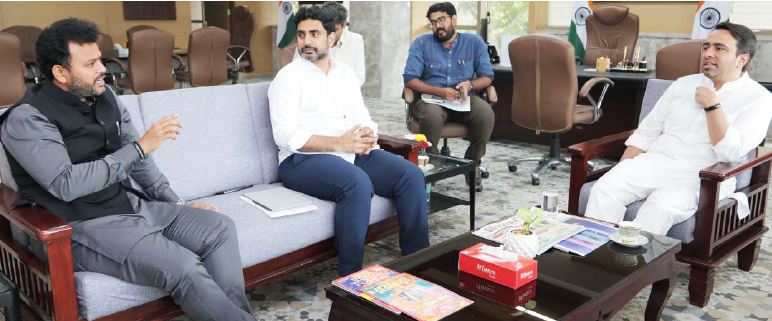 న్యూఢిల్లీ (చైతన్యరథం): ఆంధ్రప్రదేశ్ రాష్ట్రంలో ఐదేళ్లలో 20 లక్షల ఉద్యోగాలు కల్పించేందుకు ఉద్దేశించిన స్కిల్ డెవలప్మెంట్ ప్రణాళికలు, దేశంలోనే మొదటిసారిగా జరుగుతున్న స్కిల్ సెన్సస్కి సహకారం అందించాలని కేంద్ర మంత్రి, సెంట్రల్ స్కిల్డెవలప్మెంట్ అండ్ ఆంత్రప్రెన్యూర్షిప్ అధికారులను ఏపీ ఐటీ, విద్య శాఖల మంత్రి నారా లోకేష్ కోరారు. ఢల్లీిలోని కౌశల్ భవన్లో కేంద్ర స్కిల్ డెవలప్మెంట్ అండ్ ఆంత్రప్రెన్యూర్షిప్ శాఖ మంత్రి జయంత్ చౌధురి, సెక్రటరీ అతుల్ కుమార్ తివారీ, నేషనల్ స్కిల్ డెవలప్మెంట్ కార్పొరేషన్ సీఈవో వేద్మణి తివారీలతో ఏపీ మంత్రి నారా లోకేష్, ఉన్నతాధికారులు సోమవారం భేటీ అయ్యారు. ఈ సందర్భంగా ఏపీలో చేపట్టనున్న స్కిల్ సెన్సస్పై మంత్రి లోకేష్ స్పెషల్ ప్రెజెంటేషన్ ఇచ్చారు. స్కిల్ సెన్సస్ లక్ష్యం, ఎలా చేపడుతున్నారని కేంద్రమంత్రి ఆరా తీశారు. స్కిల్ సెన్సస్ పైలెట్ ప్రాజెక్టు పూర్తి కాగానే గుర్తించిన లోటుపాట్లు సరిచేసి రాష్ట్ర వ్యాప్తంగా చేపడతామని లోకేష్ వివరించారు. కూటమి ప్రభుత్వం ఐదేళ్లలో లక్షలాది ఉద్యోగాల కల్పనే ప్రధాన లక్ష్యంగా స్కిల్ డెవలప్మెంట్, స్కిల్ సెన్సస్ చేపట్టిందని మంత్రి తెలిపారు. స్కిల్ డెవలప్మెంట్ లక్ష్యం చేరుకునేందుకు కేంద్ర ప్రభుత్వం, నేషనల్ స్కిల్ డెవలప్మెంట్ కార్పొరేషన్, మంత్రిత్వశాఖల నుంచి ఏపీకి ఏమేం కావాలో వివరిస్తూ ఓ లేఖను మంత్రి నారా లోకేష్ అందజేశారు.