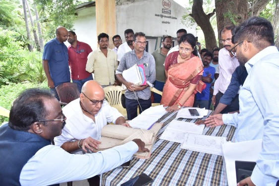 జిల్లా పర్యటన నిమిత్తం ఉదయం భోగాపురం మండలం పోలిపల్లి నిర్వాసితుల పునరావాస కాలనీకి చేరుకున్న రెవిన్యూ ప్రత్యేక ప్రధాన కార్యదర్శికి జిల్లా కలెక్టర్‌ డా.బి.ఆర్‌.అంబేద్కర్‌, జాయింట్‌ కలెక్టర్‌ సేతుమాధవన్‌, ఆర్‌.డి.ఓ. ఎం.వి.సూర్యకళ తదితరులు ఘనస్వాగతం పలికారు. అనంతరం అక్కడి మండలపరిషత్‌ ప్రాథమిక పాఠశాలకు చేరుకొని గ్రామ రెవిన్యూ రికార్డులను పరిశీలించారు. పలువురు రైతులతో మాట్లాడి భూముల క్రయవిక్రయాలపై సమాచారం సేకరించారు. అనంతరం భోగాపురంలో తహశీల్దార్‌ కార్యాలయం, సబ్‌ రిజిష్ట్రార్‌ కార్యాలయాలను సందర్శించి భూములకు సంబంధించిన రికార్డులను పరిశీలించారు.