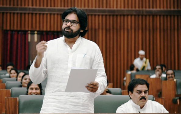 గత ప్రభుత్వం వ్యక్తిగత దూషణలతో రాష్ట్ర పురోభివృద్ధిని ఆపేసింది. భాషా నియంత్రణ శాసన సభ నుంచే మొదలు కావాలి. సభాపతి ఆ బాధ్యత తీసుకోవాలి. ఆడబిడ్డలు గత ప్రభుత్వ హయాంలో నలిగిపోయారు. ఏదైనా ప్రజా సమస్య మీద మాట్లాడితే సోషల్ మీడియాలో వ్యక్తిగత జీవితాలపై బురదజల్లే వారు. మీ హయాంలో అలాంటి చర్యలు ఆగిపోవాలి. చర్చల్లో సంస్కారహీనమైన భాష, భావాలు ఉండకూడదని కోరుకుంటున్నానని పవన్ విజ్ఞప్తి చేశారు. భావంలో ఉండే తీవ్రత భాషలో ఉండాల్సిన అవసరం లేదని, భాష మనుషులను కలపడానికే తప్ప విడగొట్టడానికి కాదన్నారు. భాష సమస్యలను పరిష్కరించడానికి తప్ప విద్వేషాలు రేపడానికి కాదు. ఎంతటి జటిలమైన సమస్యనైనా చర్చల ద్వారా పరిష్కరించవచ్చని ప్రస్తుత సభ నిరూపించాలన్నారు. భావాన్ని బలంగా తెలియజేయాలంటే దానిలో అసభ్యత లేకుండా మానవీయతతో ప్రజలందరికీ అర్ధమయ్యేలా చెప్పాలి. ముఖ్యమంత్రి చంద్రబాబు చెప్పినట్లు ఈ సభ భవిష్యత్కు ప్రామాణీకం కావాలని, రాష్ట్ర దిశ మార్చే వేదిక కావాలన్నారు. తన ప్రసంగంలో అయ్యన్నపాత్రుడు ప్రసంగ శైలిని ఉద్దేశించి పవన్ ఛలోక్తులు సభలో నవ్వులు పూయించాయి. ‘మీకు కోపం వస్తే రుషికొండను చెక్కినట్లుగా ఉత్తరాంధ్ర యాసలో పదునైన మాటలతో ప్రత్యర్థులకు గుండు కొట్టేస్తారు’ అంటూ వ్యాఖ్యానించటంతో సభలో ఒక్కసారిగా నవ్వులు విరబూశాయి.