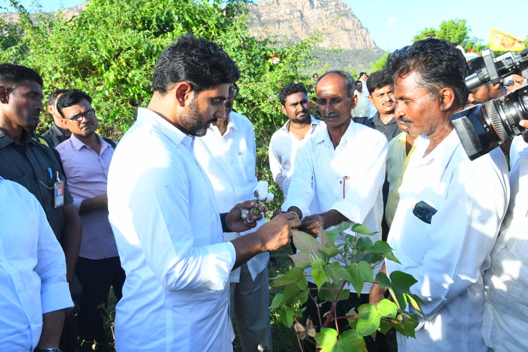 • ఆత్మకూరు నియోజకవర్గం గుడిగుంట క్రాస్ వద్ద పత్తిచేలో దిగిన లోకేష్, రైతు కష్టాలు తెలుసుకున్నారు.