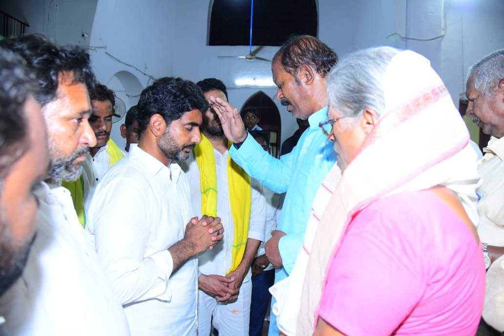 అనంతరం లోకేష్ మతపెద్దల ఆశీర్వచనం తీసుకున్నారు. ఈ సందర్భంగా వారు ఎదుర్కొంటున్న సమస్యలను అడిగి తెలుసుకున్నారు. నగరంలో శ్మశాన వాటిక సమస్య ఉందని వారు తెలుపగా, అధికారంలోకి వచ్చిన వెనువెంటనే ఈ సమస్య పరిష్కరిస్తానని హామీ ఇచ్చారు.