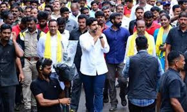 అమరావతి (చైతన్య రథం): రాష్ట్రంలో జగన్మోహన్‌రెడ్డి అరాచక పాలనపై యువనేత నారా లోకేష్‌ చేపట్టిన యువగళం పాదయాత్ర ప్రజా తిరుగుబాటుగా మారి చివరకు వైసీపీ ప్రభుత్వాన్ని కూకటివేళ్లతో పెకలించింది. 2023 జనవరి 27న కుప్పం శ్రీ వరదరాజ స్వామి పాదాలచెంత యువనేత లోకేష్‌ ప్రారంభించిన చారిత్రాత్మక పాదయాత్ర రాష్ట్ర రాజకీయ యవనికపై చెరగని ముద్ర వేసింది. ఉమ్మడి చిత్తూరు జిల్లా నుంచి విశాఖ వరకు 226 రోజులపాటు 97అసెంబ్లీ నియోజకవర్గాలు, 2300 గ్రామాలమీదుగా 3132 కి.మీ.ల మేర సాగిన యువగళం పాదయాత్ర జగన్‌ విధ్వంసక పాలనపై ప్రజలను చైతన్యవంతం చేయడంలో సంపూర్ణ విజయం సాధించింది. పాదయాత్ర ప్రారంభంలో యువగళంపై అధికార పార్టీతోపాటు స్వపక్షంలోనూ పెద్దగా అంచనాలు లేవు. పాదయాత్రకు ప్రజలనుంచి రోజురోజుకూ పెరుగుతూ వచ్చిన అనూహ్య స్పందనతో ప్రభుత్వ పెద్దల్లో వణుకు మొదలైంది. జీఓ1తో నల్ల జీఓ తెచ్చి యువనేత గొంతునొక్కే ప్రయత్నం చేశారు. మాట్లాడే మైక్‌నుంచి నిలబడే స్టూలు వరకు అన్నీ లాగేసి అడుగడుగునా అడ్డంకులు సృష్టించారు. అయితే యువనేత లోకేష్‌ ఏమాత్రం వెన్నుచూపకుండా కోట్లాదిమంది ప్రజాగళాన్నే తమ గొంతుకగా రెట్టించిన ఉత్సాహంతో జగన్‌ సర్కారు అరాచకపర్వాన్ని ఎలుగెత్తిచాటారు. కుప్పంలో యువగళం పాదయాత్ర ప్రారంభం మొదలు తంబళ్లపల్లి నియోజకవర్గం వరకు ఉమ్మడి చిత్తూరు జిల్లాలో ప్రతి 20కిలోమీటర్లకు ఒకటి చొప్పున మొత్తంగా 25 పోలీసు కేసులు నమోదుచేశారు. రెండురోజులకు ఒక కేసు చొప్పున బనాయించి నియతృత్వంగా వ్యవహరించారు. ప్రచార రథం, సౌండ్‌ సిస్టమ్‌, మైక్‌, స్టూల్‌తో సహా అన్నింటినీ పోలీసులు సీజ్‌ చేసినా, యువనేత ఏ దశలోనూ వెనక్కి తగ్గకుండా తమ గళాన్ని మరింత బలంగా విన్పించారు.