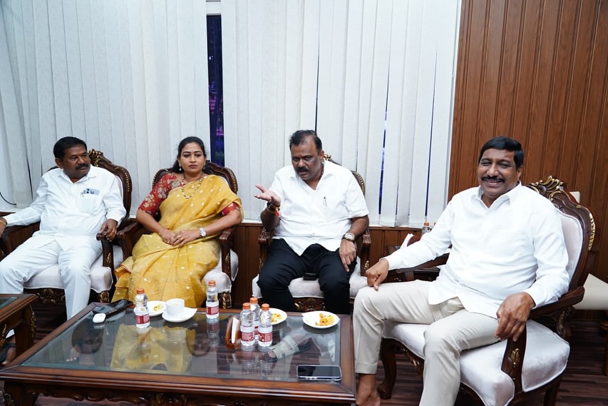 అమరావతి(చైతన్యరథం): సచివాలయంలోని 5వ బ్లాక్ ఆర్ అండ్బీ కార్యాలయంలో బుధవారం రోడ్లు భవనాలు, పెట్టుబ డులు, మౌలిక సదుపాయాల శాఖ మంత్రి బీసీ జనార్దన్రెడ్డిని సహచర మంత్రులు అనగాని సత్యప్రసాద్, వంగలపూడి అనిత, డోలా బాలవీరాంజనేయస్వామి మర్యాదపూర్వకంగా కలిశారు. ఈ సందర్భంగా రాష్ట్రంలో జరుగుతున్న అభివృద్ధి, సంక్షేమ సుపరిపాలన, ఏడాది కాలంలో రాష్ట్రానికి పెద్దఎత్తున వస్తున్న పెట్టుబడులుపై చర్చించారు.