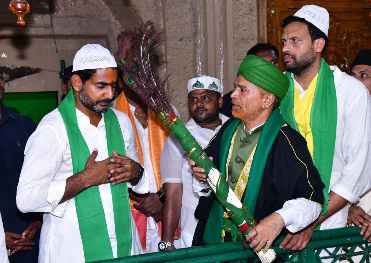 యువగళం పాదయాత్ర సందర్భంగా తెలుగుదేశం పార్టీ జాతీయ ప్రధాన కార్యదర్శి నారా లోకేష్ శనివారం కర్నూలు 48వవార్డు రోజాదర్గా వద్ద ముస్లిం మతపెద్దలను కలిసి వారి ఆశీర్వచనం తీసుకున్నారు. రోజా దర్గాలోకి వెళ్లి మతపెద్దలకు అభివాదం చేసిన లోకేష్ ను వారు ఆత్మీయంగా అక్కున చేర్చుకున్నారు. యువగళం పాదయాత్ర విజయవంతమయ్యేలా తనను ఆశీర్వదించాలని మతపెద్దలను లోకేష్ విన్నవించారు.