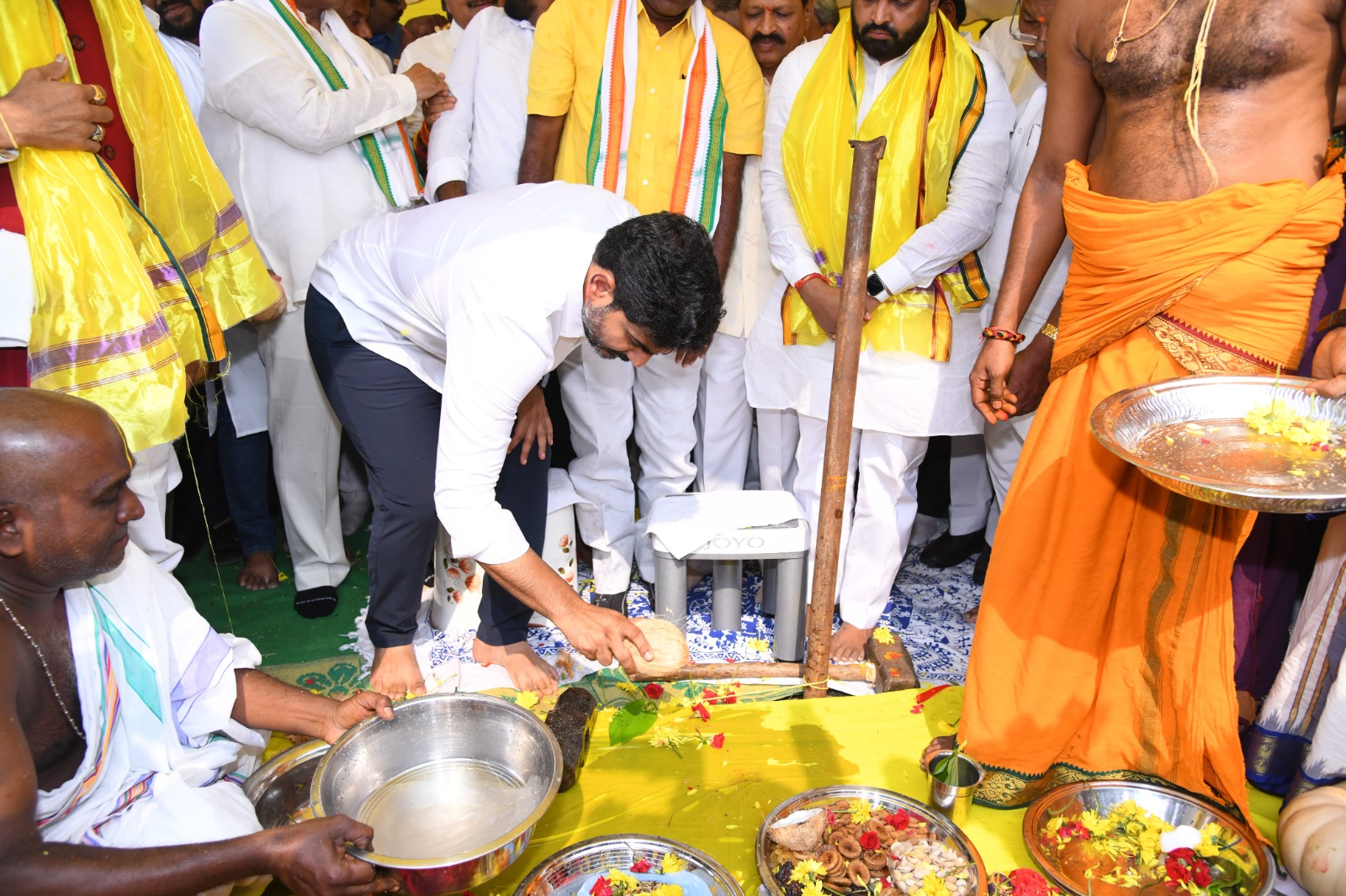 - భూమిపూజ చేసి పనులకు శ్రీకారం చుట్టిన నారా లోకేష్