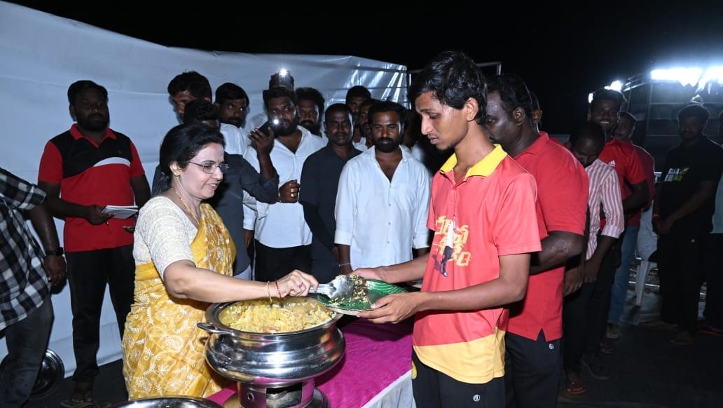 స్వయంగా భోజనం వడ్డించి వలంటీర్లకు అభినందన