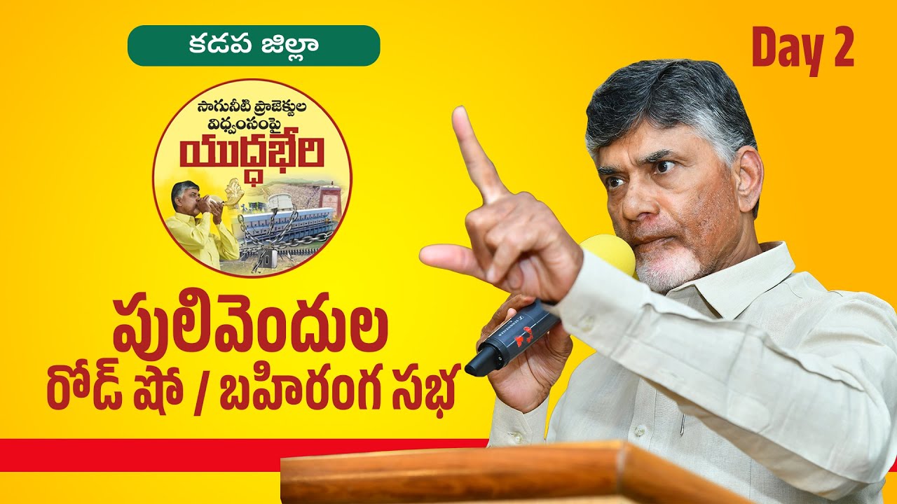 <strong>LIVE : సాగునీటి ప్రాజెక్టుల విధ్వంసంపై యుద్ధభేరి - పులివెందులలో చంద్రబాబు గారి రోడ్డు షో/బహిరంగ సభ.</strong> [embed]https://www.youtube.com/watch?v=Tf8MtoxVtjQ[/embed]
