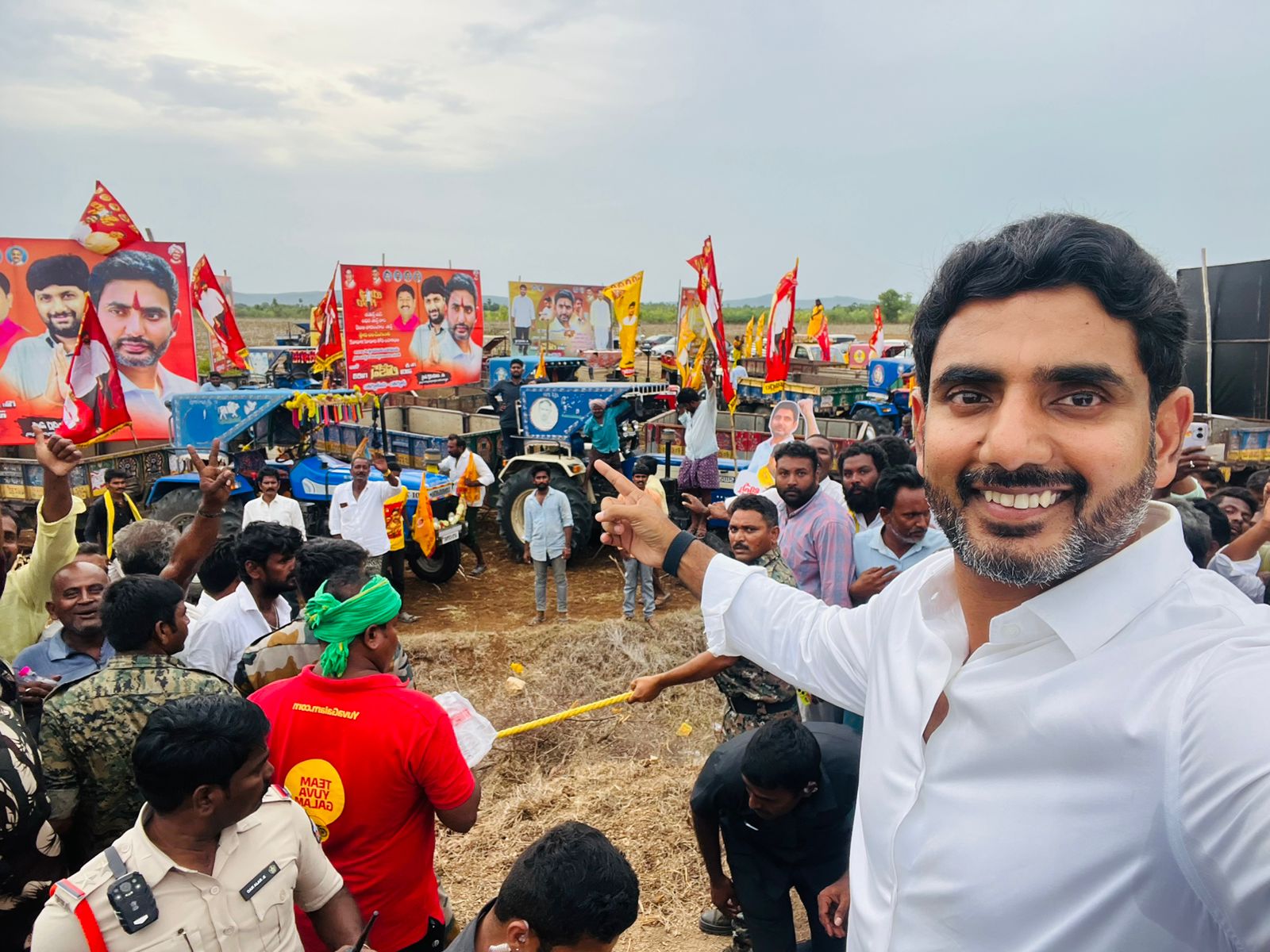 ఇవి గత టిడిపి ప్రభుత్వంలో అన్నదాతలకు ఇచ్చిన రైతురథాలు. యువగళం పాదయాత్ర సందర్భంగా మాలేపాడు శివార్లలో నాకు తారసపడ్డాయి. ఒక్క కొండపి నియోజకవర్గంలోనే 150 ట్రాక్టర్లు అందజేశాం. రైతును రాజుగా నిలపాలన్న లక్ష్యంతో చంద్రబాబు గారు పనిచేస్తే, జగన్మోహన్ రెడ్డి నేతృత్వంలోని సైకో ప్రభుత్వం అన్నదాతలను ఉరికంభమెక్కిస్తోంది. ఈరోజు తెల్లవారుజామున కుప్పం నియోజకవర్గం గుడిపల్లిలో వైసిపి సర్కారు వేధింపులు తాళలేక ఎండిఓ కార్యాలయంలోనే గోవిందప్ప అనే రైతన్న ఫ్యాన్ కు ఉరివేసుకొని ఆత్మహత్య చేసుకున్నాడు. ఎవరు రైతు బాంధవుడు? ఎవరు రైతుల పాలిట యమకింకరుడు?!