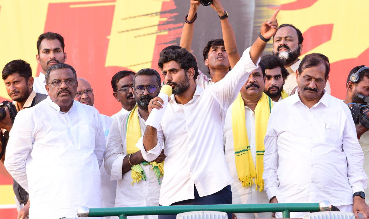 జాబ్ క్యాలెండర్ ఇవ్వలేదు, 2.30 లక్షల ఉద్యోగాలు ఇవ్వలేదు, ప్రతి ఏటా 6,500 పోలీసు ఉద్యోగాలు ఇవ్వలేదు, గ్రూప్2 లేదు, డిఎస్సి లేదు. ఉన్న అంబేద్కర్ స్టడీ సర్కిల్స్, బీసీ స్టడీ సర్కిల్స్ మూసేసాడు. జిఓ77 తీసుకొచ్చి ఉన్నత విద్య చదువుతున్న వారికీ ఫీజు రీయింబర్స్మెంట్ పధకం రద్దు చేసాడు. ఖైదీలకు 2 వేల రూపాయల మెస్ ఛార్జీలు ఇస్తుంటే, విద్యార్థులకు మాత్రం వెయ్యి రూపాయలు మాత్రమే ఇస్తున్నాడు అని లోకేష్ ఆరోపించారు. టిడిపి అధికారంలోకి వచ్చిన వెంటనే ప్రతి ఏడాది నోటిఫికేషన్ ఇస్తాం. జగన్ విశాఖ, అనంతపురం, గుంటూరు లో మూసేసిన స్టడీ సర్కిల్స్ తిరిగి ప్రారంభించడంతో పాటు అన్ని జిల్లాల్లో స్టడీ సర్కిల్స్ ఏర్పాటు చేస్తామని హామీ ఇచ్చారు. డ్రామా మోహన్ మహిళల తాళిబొట్లు తెంచుతున్నాడు. మద్యపాన నిషేధం తరువాతే ఓట్లు అడుగుతా అన్నాడు. ఇప్పుడు మద్యాన్ని ఏరులై పారిస్తున్నాడు. మహిళల తాళిబొట్లు తాకట్టు పెట్టి 25వేల కోట్లు అప్పు తెచ్చాడు. 45 ఏళ్లకే బీసీ, ఎస్సి, ఎస్టీ మహిళలకు పెన్షన్ అన్నాడు. పెన్షన్ దేవుడెరుగు పాపం మహిళలు దాచుకున్న అభయహస్తం డబ్బులు 2500 కోట్లు కొట్టేసాడు. ఎంత మంది పిల్లలు ఉంటే అంతమందికి అమ్మ ఒడి ఇస్తా అని మోసం చేసాడు అని చెప్పారు. టిడిపి అధికారంలోకి వచ్చాకా పన్నుల భారం తగ్గిస్తాం. నిత్యావసర సరుకుల ధరలు తగ్గిస్తామని హామీ ఇచ్చారు.