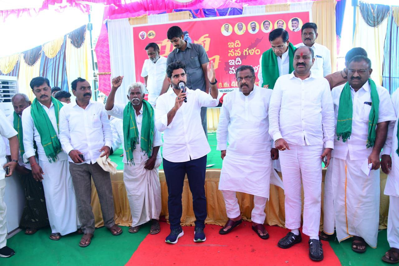 ఉల్లి రైతులను ఆదుకోవడానికి కోల్డ్ స్టోరేజ్ లు ఏర్పాటు చేస్తాం. గిట్టుబాటు ధర ఇస్తామని లోకేష్ హామీ ఇచ్చారు. నకిలీ విత్తనాలతో పత్తి రైతులు నష్టపోతే ప్రభుత్వం ప్రకృతి కారణంగా నష్టం వచ్చిందని కొట్టిపారేసింది. టిడిపి అధికారంలోకి వచ్చిన వెంటనే నాణ్యమైన విత్తనాలు అందజేస్తాం. నకిలీ విత్తనాలు అమ్మే కంపెనీల పై చర్యలు తీసుకుంటాం. మిర్చి రైతులు అమ్ముకోవడానికి గుంటూరు వెళ్తున్నారు. అందుకే ఆదోనిలో మిర్చి యార్డు ఏర్పాటు చేస్తాం. మిరప రైతులను ఆదుకుంటాం. టొమాటో రైతులను ఆదుకోవడానికి ప్రాసెసింగ్ యూనిట్లు, కోల్డ్ స్టోరేజ్, టొమాటో వాల్యూ చైన్ ప్రాజెక్టు అమలు చేస్తాం. రైతులకు ఉచిత విద్యుత్ కూడా సరిగ్గా ఇవ్వలేని చెత్త ప్రభుత్వం జగన్ ది. టిడిపి అధికారంలోకి వచ్చిన తర్వాత పగలే ఉచిత విద్యుత్ అందజేస్తామని లోకేష్ వివరించారు. ముగ్గురు ఎమ్మెల్యేలు ఉన్న విష నాగు కుటుంబం ఎప్పుడైనా ముఖ్యమంత్రి ని కలిసి రైతులను ఆదుకోవాలి అని కోరారా? అని ప్రశ్నించారు. భూమి యజమానులకు ఇబ్బంది లేకుండా కౌలు రైతులను ఆదుకోవడం కోసం ప్రత్యేక చట్టం తీసుకొస్తాం.