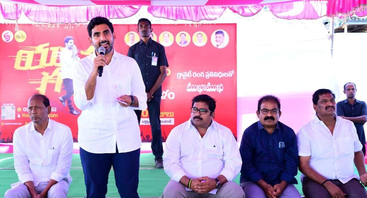 ఉమ్మడి ప్రకాశం జిల్లా ఒంగోలు నియోజకవర్గం గ్రానైట్ రంగం ప్రతినిధులతో నారా లోకేష్ ముఖాముఖి. టిడిపి హయాంలో రూ.4 ఉన్న యూనిట్ విద్యుత్ ధర జగన్ పాలనలో రూ.7 కి పెరిగిపోయింది. జగన్ కరెంట్ ఛార్జీలు తగ్గిస్తా అని మమ్మల్ని మోసం చేసాడు. 4 లక్షల మందికి ఉపాధి గా ఉన్న చీమకుర్తి గ్రానైట్ పరిశ్రమను జగన్ నాశనం చేశాడు. జగన్ పాలనలో 800 ఫ్యాక్టరీల్లో సగం మూతపడ్డాయి. గ్రానైట్ ఎక్స్ పోర్ట్ చెయ్యడానికి ఇబ్బంది పడుతున్నాం. కృష్ణపట్నం పోర్టు అదానీ కి ఇచ్చి ఇతర కంపెనీల కంటైనర్లు రాకుండా చెయ్యడం వలన ఎక్స్ పోర్ట్ పై ఒక్కో కంపెనీ కి రూ.60 వేలు అదనంగా ఖర్చు అవుతుంది. రాయల్టీ తగ్గిస్తానని హామీ ఇచ్చిన జగన్ ఇప్పుడు వంద శాతం పెంచి మా పొట్ట కొట్టాడు. మైనింగ్ యాజమానుల పై విపరీతమైన ఫైన్లు వేసి వేధిస్తున్నారు. గ్రానైట్ ట్రాన్స్ పోర్ట్ రంగాన్ని జగన్ దెబ్బతీసాడు. ఓవర్ లోడ్ పేరుతో వేధిస్తున్నారు. ఫైన్లు విపరీతంగా పెంచేశారు. రూ.2 వేలు ఉన్న ఓనర్ పెనాల్టీ ని జగన్ రూ.20 వేలు చేసాడు. టన్ను పై వెయ్యి ఉన్న పెనాల్టీ జగన్ రెండు వేలు చేసాడు. 400 లారీలు గతంలో తిరిగేవి ఇప్పుడు కేవలం 40 లారీలు తిరిగే పరిస్థితి వచ్చింది.
