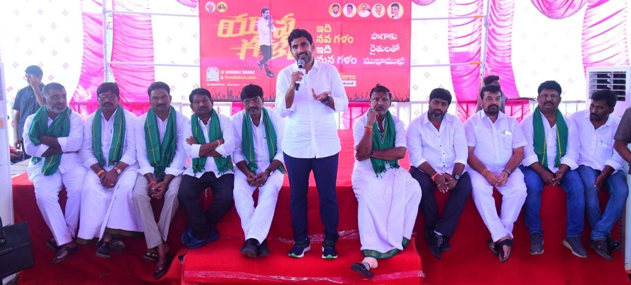 తలమళ్ల క్యాంప్ సైట్ వద్ద పొగాకు రైతులతో నిర్వహించిన ముఖాముఖి సమావేశంలో పాల్గొన్న నారా లోకేష్.