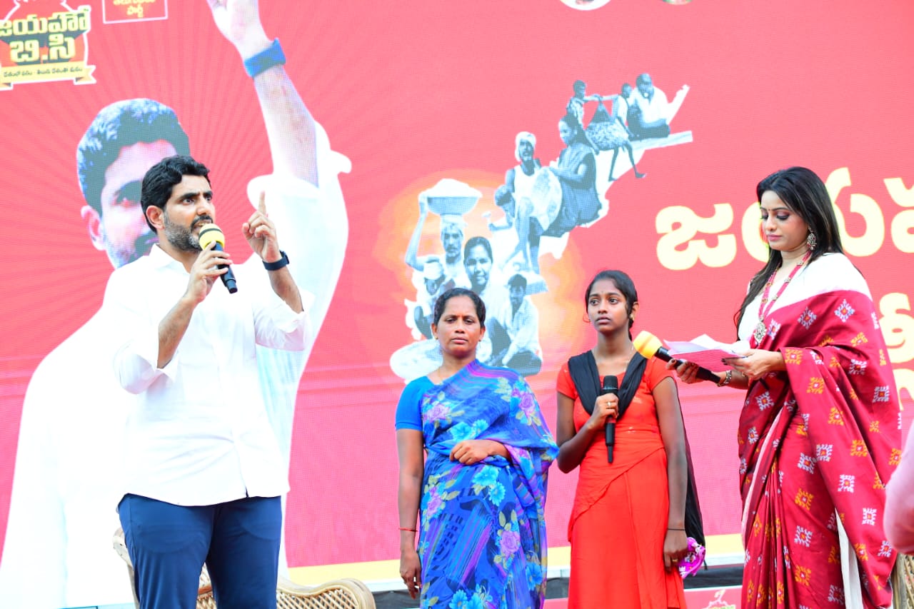 అధికార మదంతో బిసిలను వేధించిన కామాంధులను రోడ్లపై వెంటాడి కటకటాల్లో పెడతాం. తెలుగుదేశం పార్టీ ఆవిర్భావంతోనే బిసిలకు రాజకీయ, ఆర్థిక స్వాతంత్ర్యం లభించింది. దేశానికి సంక్షేమాన్ని పరిచయం చేసింది స్వర్గీయ నందమూరి తారకరామారావు. బిసిలకు దామాషా పద్ధతిన నిధులు కేటాయించి, కార్పొరేషన్లను బలోపేతం చేస్తాం. వైసిపి ప్రభుత్వం రద్దుచేసిన ఆదరణ పథకాన్ని పునరుద్దరించి, బిసిలకు పనిముట్లు అందజేస్తాం. విదేశీవిద్య పథకంతో బిసిబిడ్డలకు ఉన్నత విద్యాభ్యాసానికి అవకాశం కల్పిస్తాం. పెద్దఎత్తున పరిశ్రమలు తెచ్చి ఉద్యోగావకాశాలు కల్పిస్తాం. కులధృవీకరణ పత్రాల కోసం తరచూ ఆఫీసుల చుట్టూ తిరిగే అవసరం లేకుండా సెల్ ఫోన్ ద్వారా ఒక్క బటన్ తో బిసిలకు శాశ్వత కులధృవీకరణ పత్రాలు అందేలా చర్యలు తీసుకుంటాం. పేదరికం లేని రాష్ట్రం కోసం కులవృత్తులను ప్రోత్సహించి, వారి ఆర్థిక స్వావలంబనకు చేయూతనిస్తాం.