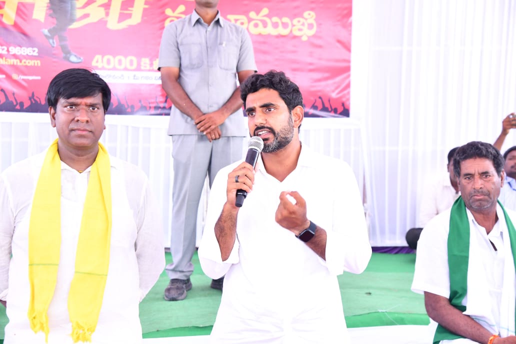 వైసిపి ప్రభుత్వం వ్యవసాయ మోటార్లకు బిగిస్తున్న మీటర్లను రద్దుచేయాలి. ఉపాధి హామీ పథకానికి వ్యవసాయాన్ని అనుసంధానం చేయాలి. గత ప్రభుత్వ హయాంలో నందవరం ఎస్సీ కాలనీలో 218మంది దళితులకు 3సెంట్ల చొప్పున మంజూరుచేసిన పట్టాలను వైసిపి ప్రభుత్వం రద్దుచేసింది. రద్దుచేసిన పట్టాలను పునరుద్దరించండి. 70సంవత్సరాలుగా ఎస్సీకాలనీ ప్రజలకు శ్మశానవాటిక లేదు. కాలనీలో సిసి రోడ్లు లేవు. గ్రామంలో అంబేద్కర్ విగ్రహం, చర్చి నిర్మాణానికి సహకారం అందించండి. గతంలో ప్రమాదవశాత్తు మరణం సంభవిస్తే రూ. 5లక్షలు, సహజ మరణానికి 2లక్షలు ఇచ్చేవారు. వైసిపి ప్రభుత్వం రద్దుచేసిన ఆ పథకాన్ని కొనసాగించండి. గత ప్రభుత్వం దళిత ఆడబిడ్డల,కు పెళ్లికానుక కింద రూ.50వేలు ఇచ్చేది, వైసిపి ప్రభుత్వం వచ్చాక రద్దుచేసిన ఆ పథకాన్ని కొనసాగించండి అని వారంతా విజ్ఞప్తి చేశారు. వారి సమస్యలపై లోకేష్ సానుకూలంగా స్పందించారు. రాయలసీమలో గత ప్రభుత్వంలో నిర్మించినవి తప్ప ఒక్క కొత్త ప్రాజెక్టును కూడా వైసిపి ప్రభుత్వం చేపట్టలేదు.