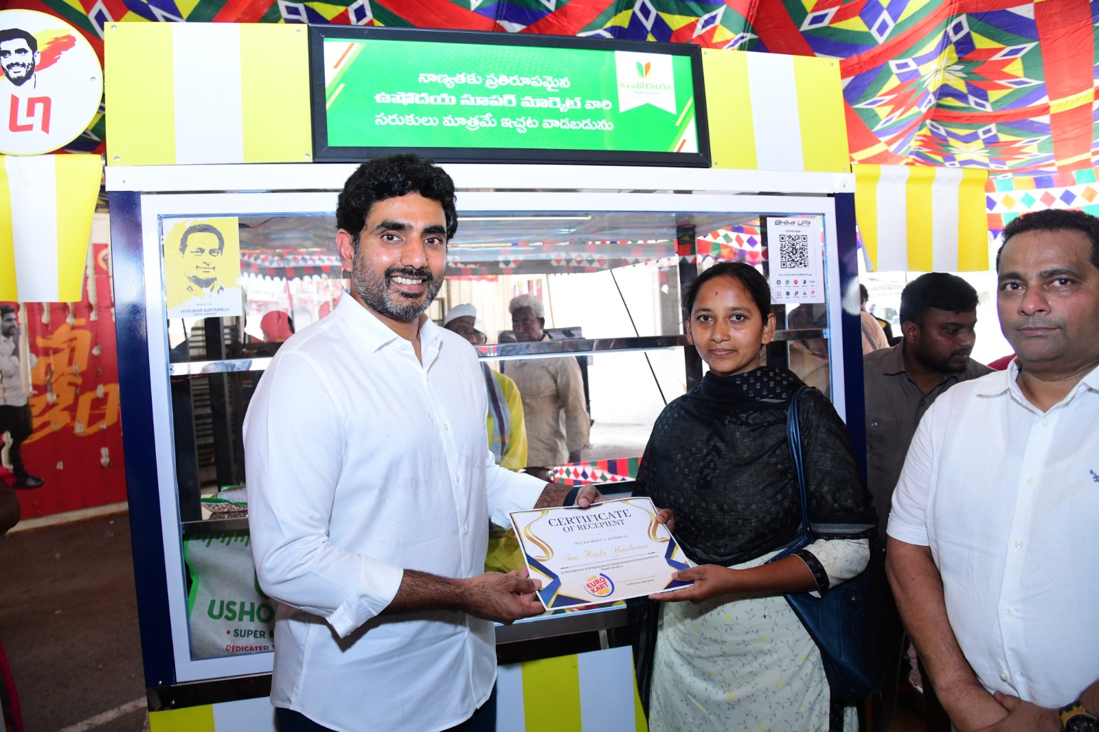 వీధి వ్యాపారు లకు వడ్డీలేని రుణాల పేరుతో 10వేలు ఇస్తున్నా రని, ఇదే సమయంలో ఆశీలు పేరుతో ఏటా రూ.10,800 లాగేస్తున్నారని తెలిపారు. చిరు వ్యాపారులు ఎక్కడైతే రోజువారీ బళ్లు పెట్టుకొని జీవనం సాగిస్తున్నారో, వారికి అక్కడే లైసెన్సులు ఇచ్చి పోలీసు వేధింపులు లేకుండా చేస్తామని తెలిపారు. చిరువ్యాపారుల బళ్లవద్ద చెత్తను మున్సి పాలిటీల ద్వారా సేకరించే విధంగా ఏర్పాటు చేస్తామన్నారు. యూరోకార్టులు పొందిన లబ్ధి దారులకు బ్యాంకుద్వారా వర్కింగ్ క్యాపిటల్ సమకూరుస్తున్నందున అడ్డగోలు వడ్డీల బెడద ఉండదని తెలిపారు. శుభ్రత విషయంలో 5 స్టార్ హోటల్స్కి దీటుగా వెస్టిన్ హోటల్ మేనేజ్ మెంట్ స్కూల్ ప్రతి నిధులతో శిక్షణ ఇస్తున్నామని చెప్పారు. ఈ అధునాతన యూరోకార్టుల వల్ల చిరువ్యాపారుల ఆదాయం 50 శాతం వరకు పెరుగుతుందని లోకేష్ అన్నారు.
