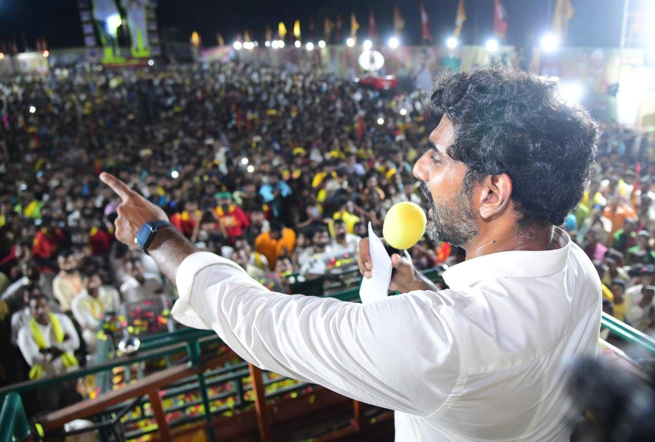 ఈ గడ్డపై నా పాదయాత్ర వెయ్యి కిలోమీటర్లకు చేరుకోవడం నా అదృష్టం. ఇంకా 3వేల కిలోమీటర్లు నడవాల్సి ఉంది. ప్రజల ఆశీర్వాదంతో వెయ్యి కిలోమీటర్ల పాదయాత్ర పూర్తి చేశాను. పేదరికం లేని రాష్ట్రం చూడాలన్నదే నా కల. పాదయాత్ర పూర్తయ్యేలోపు ప్రజల్లో చైతన్యం వచ్చి తిరుగుబాటు చేయాలి. జగన్ ను తరిమికొట్టాలని తెలుగుదేశం పార్టీ జాతీయ ప్రధాన కార్యదర్శి నారా లోకేష్ ప్రజలకు పిలుపునిచ్చారు. ఆదోని శివారు కడికొత్త క్రాస్ వద్ద జరిగిన బహిరంగసభ లో యువనేత లోకేష్ మాట్లాడుతూ పాదయాత్ర ఆపడానికి పరదాల జగన్ అనేక ప్రయత్నాలు చేశాడు. ఆయన రాజారెడ్డి రాజ్యాంగాన్ని నమ్ముకుంటే నేను అంబేద్కర్ రాజ్యాంగాన్ని నమ్ముకుని ముందుకు సాగాను. ప్రజల్లో మార్పు మొదలైంది. కమలాపురం ఎస్సీ కాలనీలో ప్రజలు తాళాలు వేసుకొని వెళ్లారు. జగన్ కు బైబై రోజు చెప్పే రోజులు దగ్గర్లోనే ఉన్నాయి. తనకు సొంత పేపర్, టీవిలు లేవని జగన్ చెబుతున్నారు. సాక్షి పేపర్, టివి ఎవరివి? 5రూపాయల పేటిఎం బ్యాచ్ ఎవరిది? భారతదేశంలోనే అతి ధనవంతుడు ఎవరు? నన్ను నేరుగా ఎదుర్కోవడం చేతగాక భారతీరెడ్డిని రంగంలోకి దించాడు.