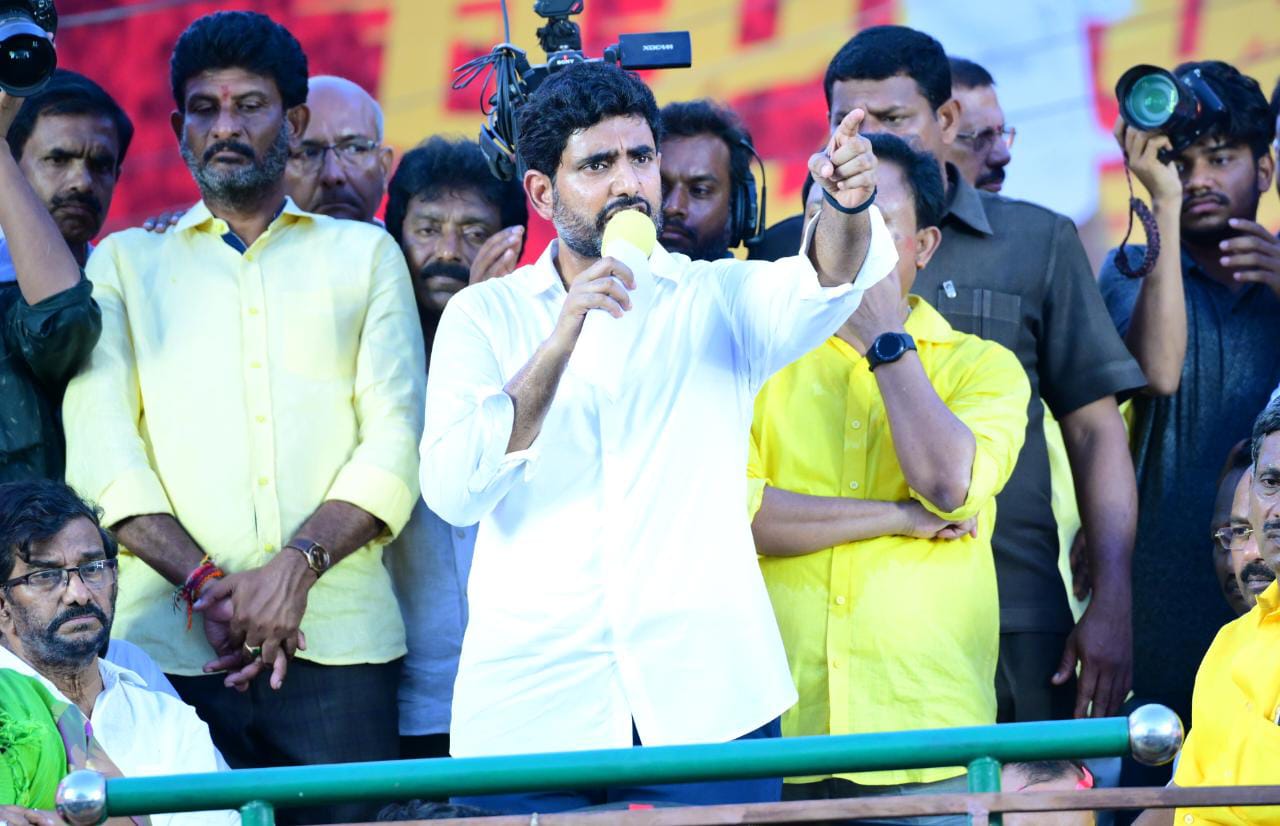 నిరుద్యోగ యువతకు యువగళం నిధి కింద నెలకు రూ.3000 ఇస్తాం. టిడిపి అధికారంలోకి వచ్చిన వెంటనే ప్రతి ఏడాది నోటిఫికేషన్ ఇస్తాం. అన్ని జిల్లాల్లో స్టడీ సర్కిల్స్ ఏర్పాటు చేస్తాం. జగన్ రైతులు లేని రాజ్యం తెస్తున్నాడు. జగన్ పరిపాలనలో నకిలీ విత్తనాలు, ఎరువులు, పురుగుల మందులతో రైతులు నష్టపోతున్నారు. రైతుల ఆత్మహత్యల్లో ఏపీ నంబర్ 3, కౌలు రైతుల ఆత్మహత్యల్లో నంబర్ 2. రైతుల్ని ఆదుకోకపోగా ఇప్పుడు మీటర్లు పెడుతున్నాడు. మీటర్లు రైతులకు ఉరితాళ్లు. తుల బాధలు చూసాం. టిడిపి అధికారంలోకి వచ్చిన వెంటనే అన్నదాతకు ఏడాదికి రూ.20 వేలు ఇస్తాం. జగన్ ఉద్యోగస్తులను వేధిస్తున్నాడు. వారంలో సీపీఎస్ రద్దు చేస్తా అని 200 వారాలు దాటినా సీపీఎస్ రద్దు చెయ్యలేదు. జీతం ఒకటో తారీఖున వచ్చే దిక్కు లేదు. పోలీసులకు 4 సరెండర్స్, 8 టిఎ, డీఏలు పెండింగ్ పెట్టాడు. ఆఖరికి జిపిఎఫ్ డబ్బులు కూడా లేపేశారు. మెడికల్ బిల్లులు కూడా ఇవ్వడం లేదు. పోలీసులు దాచుకున్న జిపిఎఫ్ డబ్బు సైతం కొట్టేసాడు. నేను ప్రతి రోజూ మాట్లాడుతుంటే భయపడి కొంత బకాయి తీర్చాడు. ఇంకా రావాల్సింది చాలా ఉంది.ఆఖరికి పెన్షనర్లకు పెన్షన్ ఇవ్వలేని చెత్త ప్రభుత్వం ఇది. బీసీలు పడుతున్న కష్టాలు నేను చూసాను. 26 వేల అక్రమ కేసులు, నిధులు, కుర్చీలు లేని కార్పొరేషన్లు. టిడిపి అధికారంలోకి వచ్చిన వెంటనే ఉపకులాల వారీగా నిధులు, బీసీల కోసం ప్రత్యేక రక్షణ చట్టం తీసుకొస్తాం. డాక్టర్ సుధాకర్ దగ్గర నుండి డాక్టర్ అచ్చెన్న వరకూ జగన్ పాలనలో దళితుల్ని ఎలా చంపారో చూసారు.